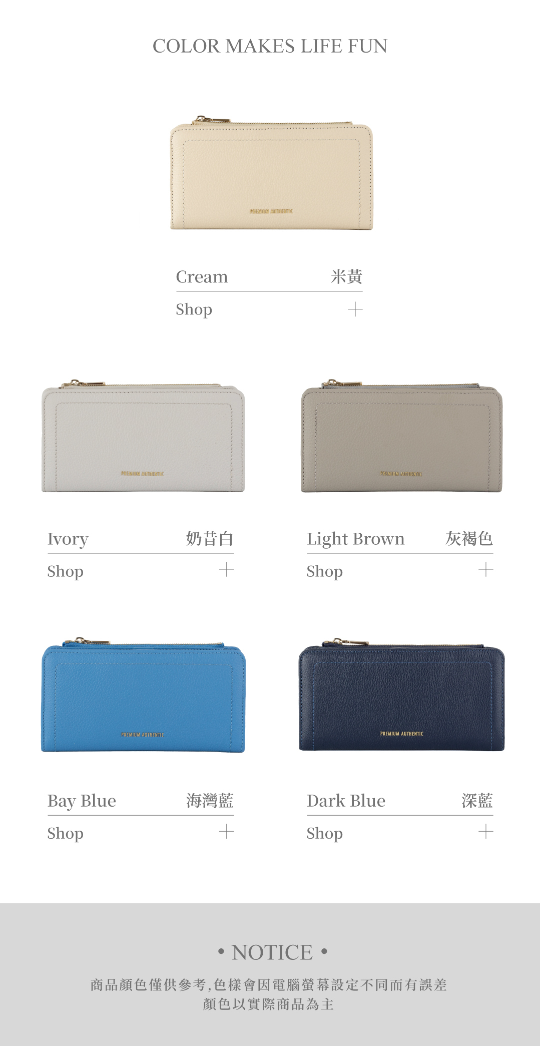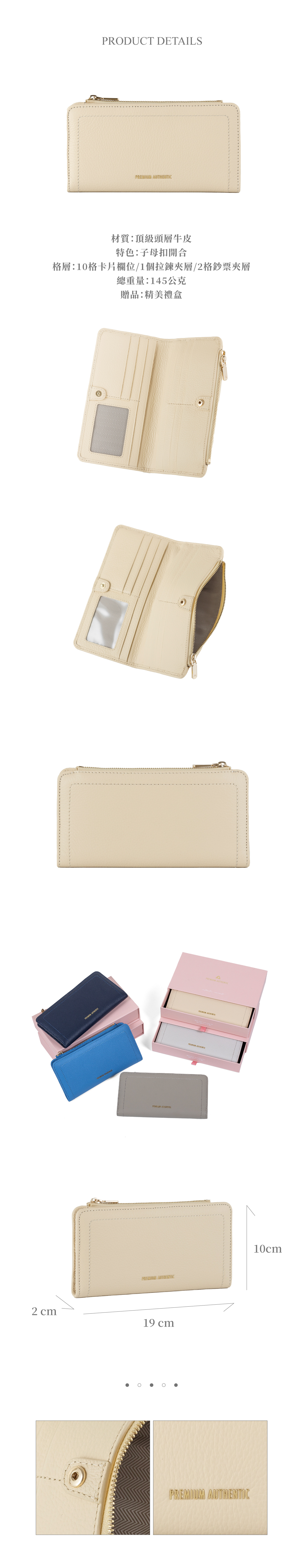[寶成員購] PA.CREPE簡約真皮拉鍊長夾-米黃