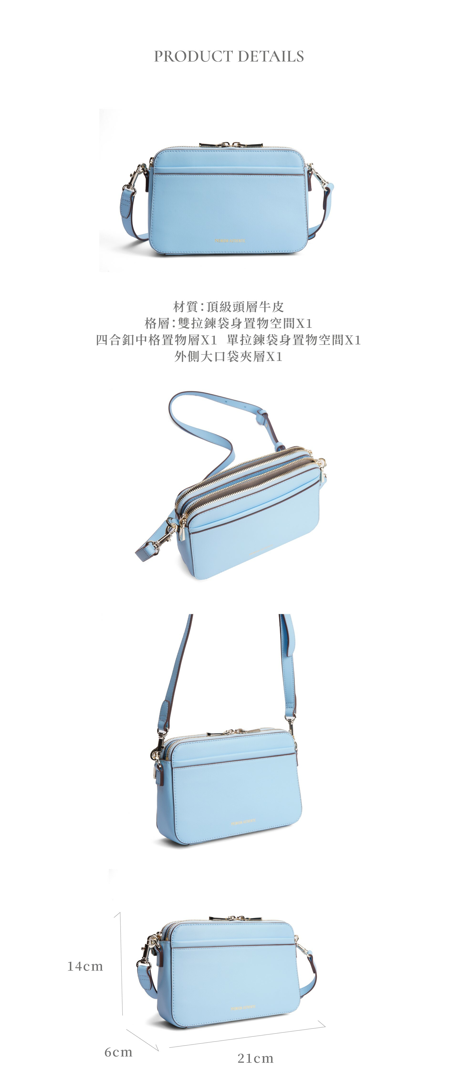 格層:雙拉鍊袋身置物空間x1/四合釦中格置物層x1/單拉鍊袋身置物空間x1/外側大口袋夾層x1