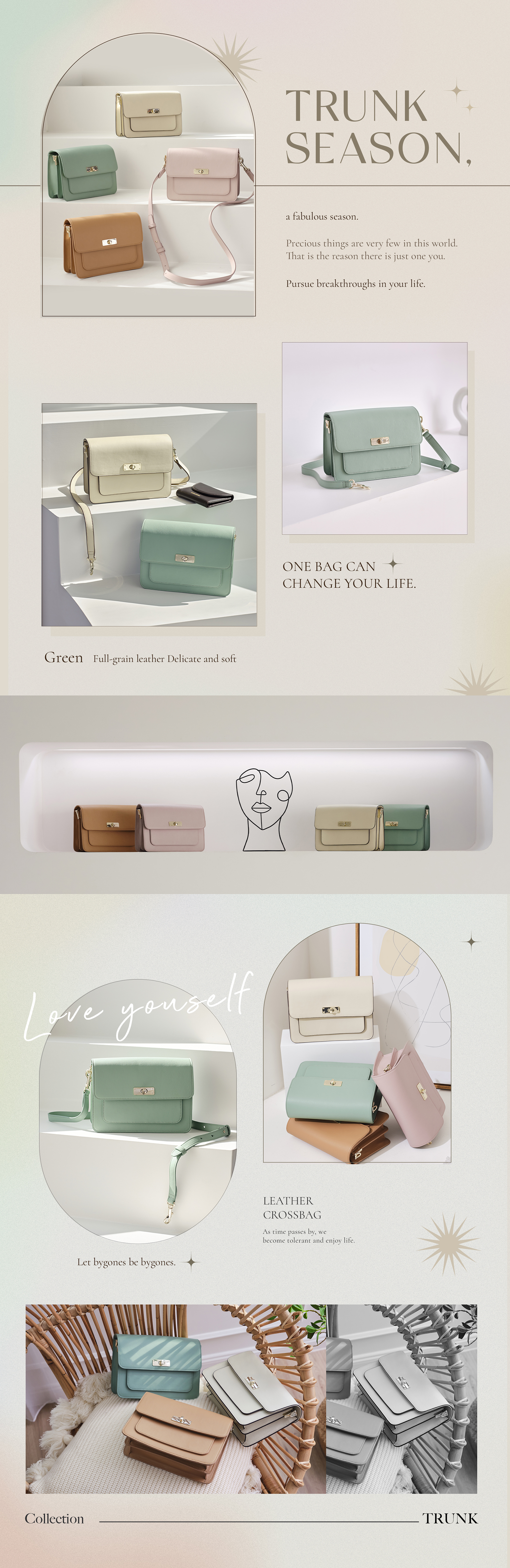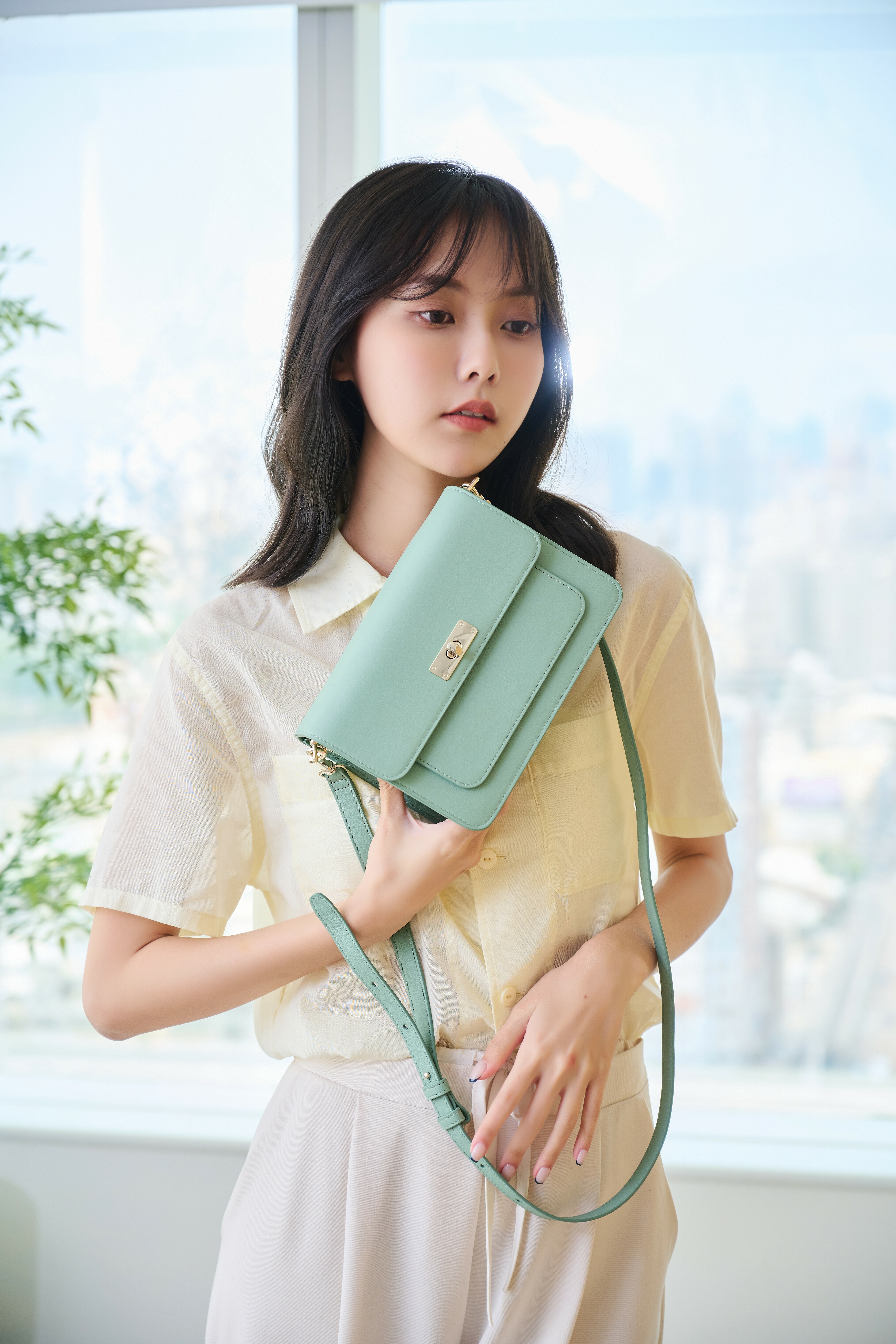 PA.Trunk真皮轉鎖風琴包-若竹綠
