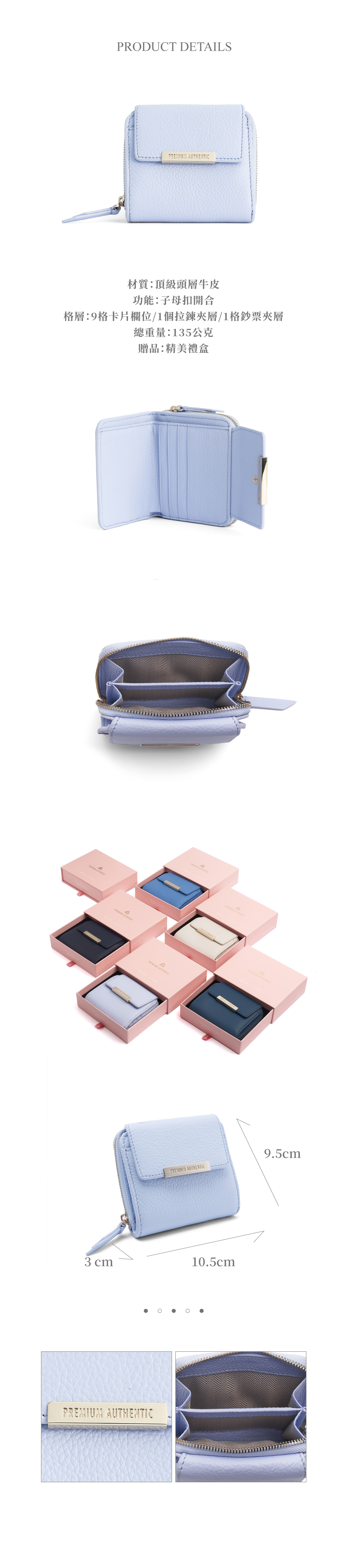 格層:卡片欄位x9/拉鍊夾層x1/鈔票夾層x1