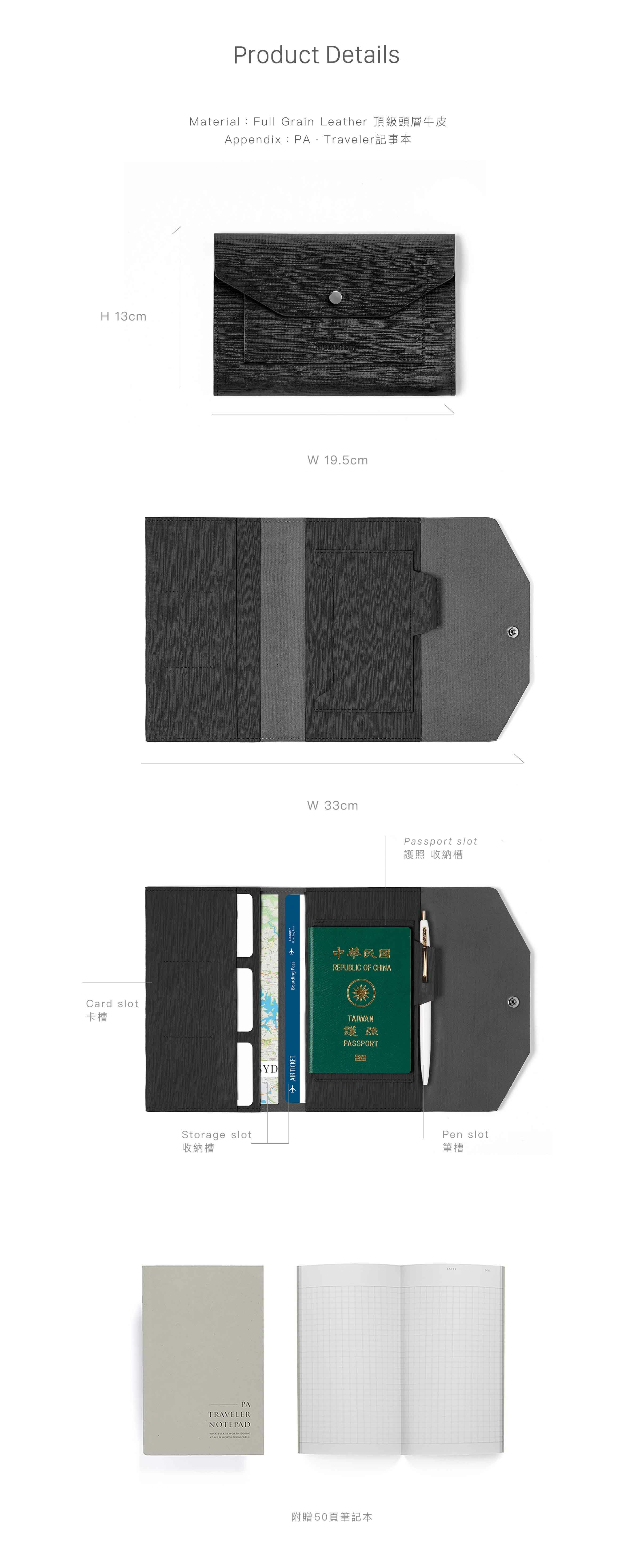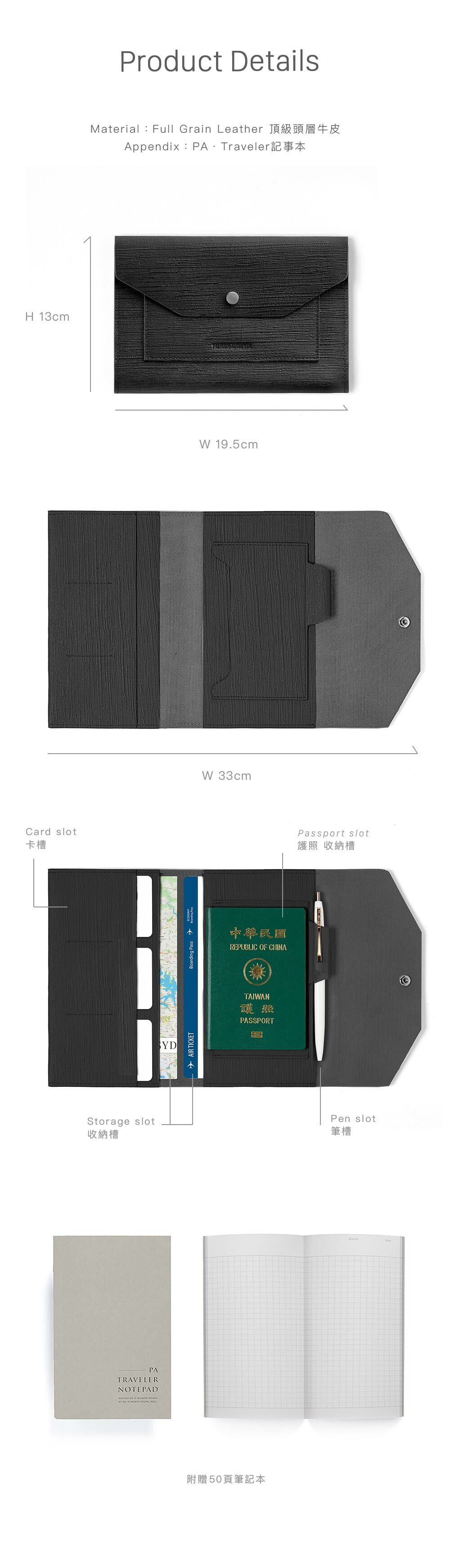 [寶成員購]PA.Traveler真皮多功能護照包-壓紋爵士黑