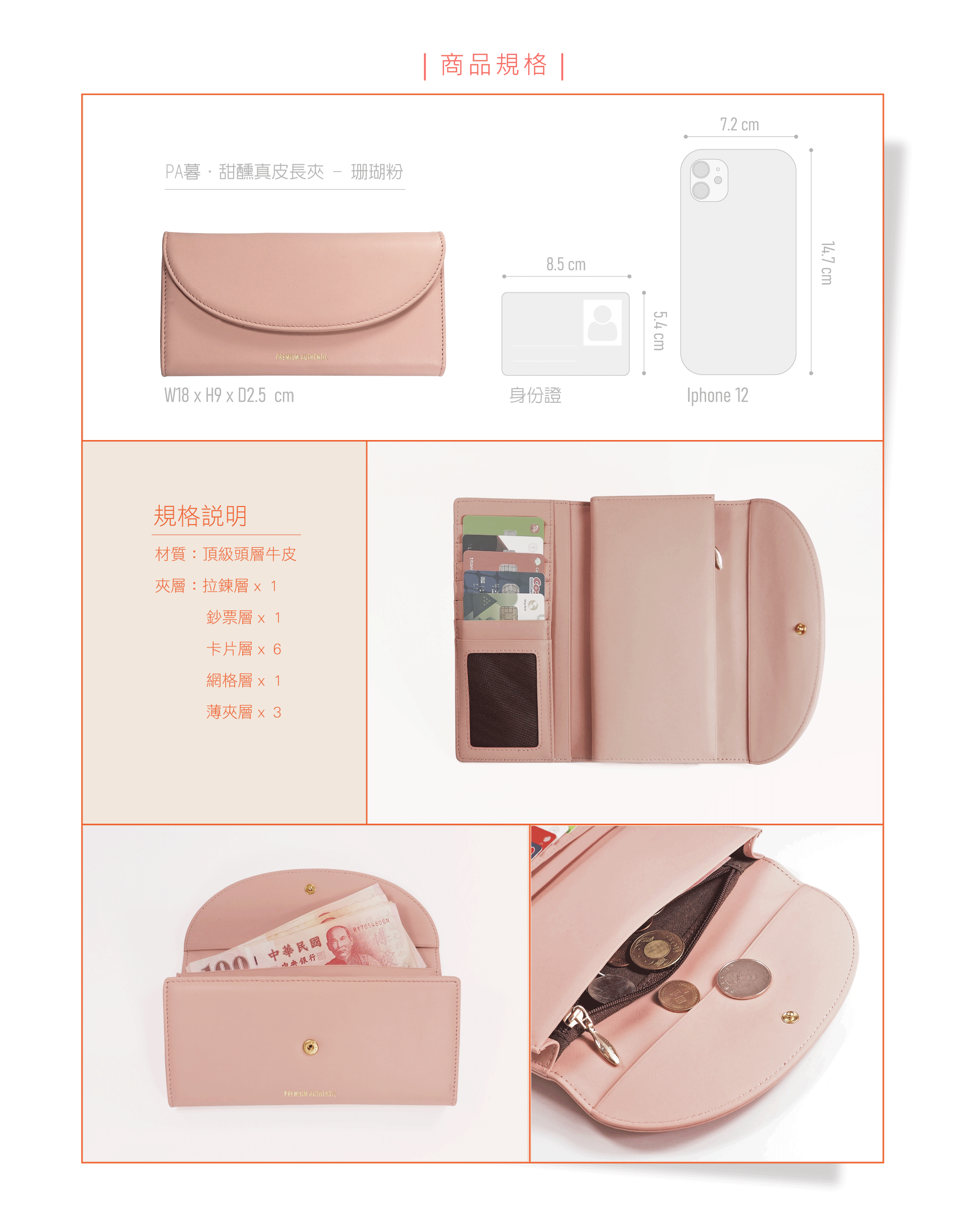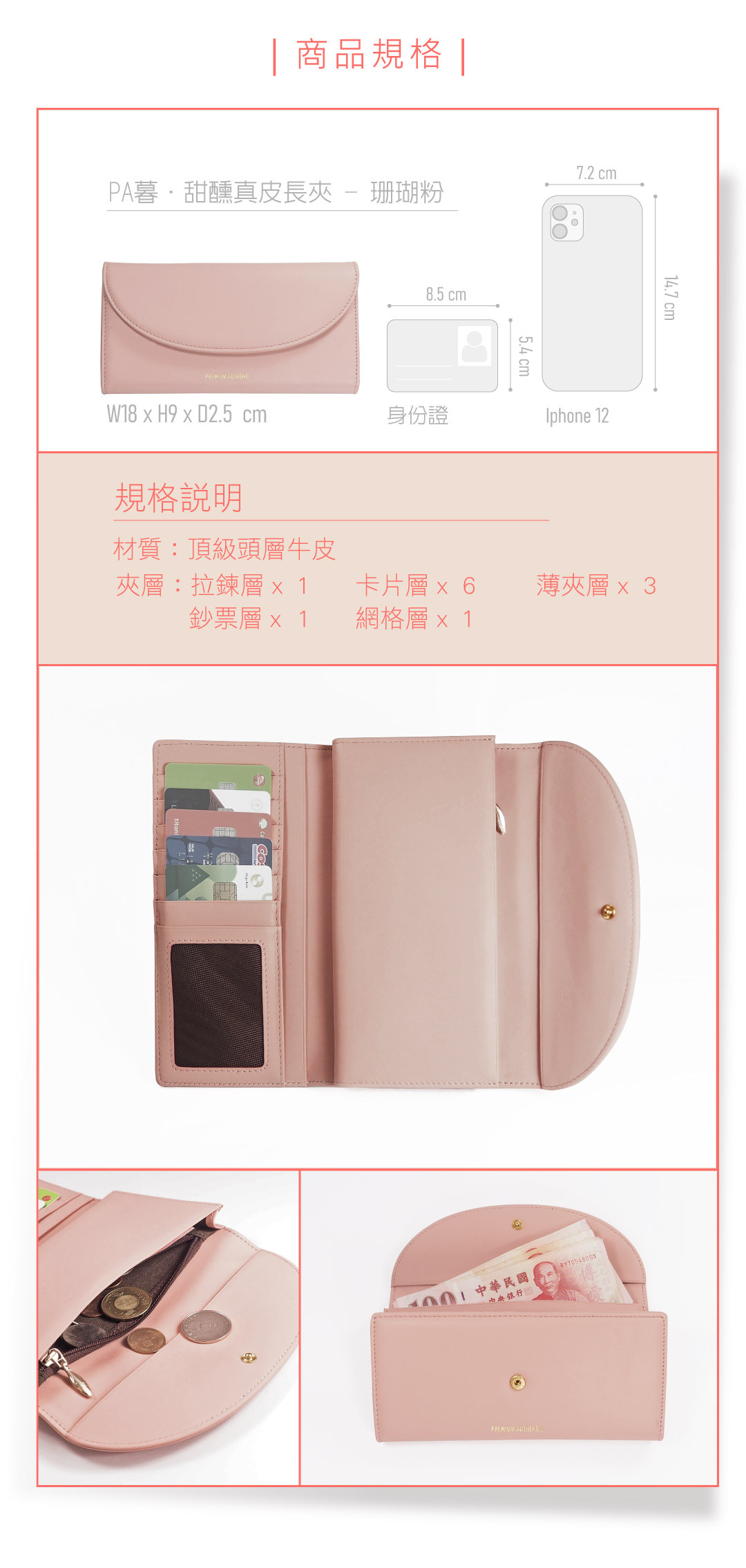 格層:拉鍊層x1/鈔票層x1/卡片層x6/網格層x1/薄夾層x3