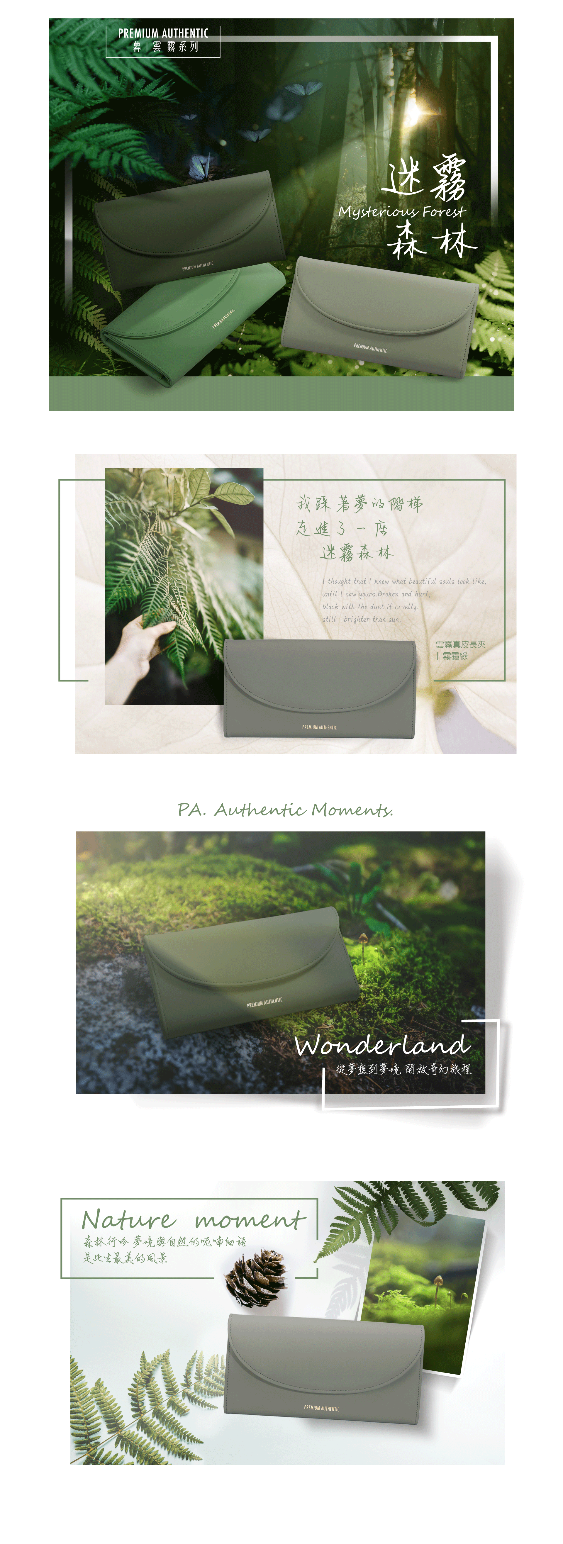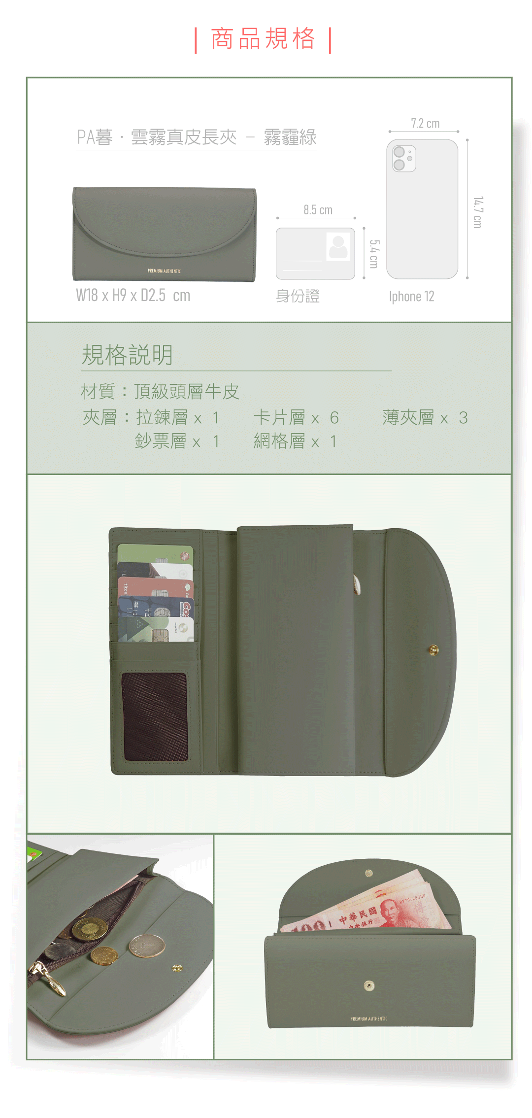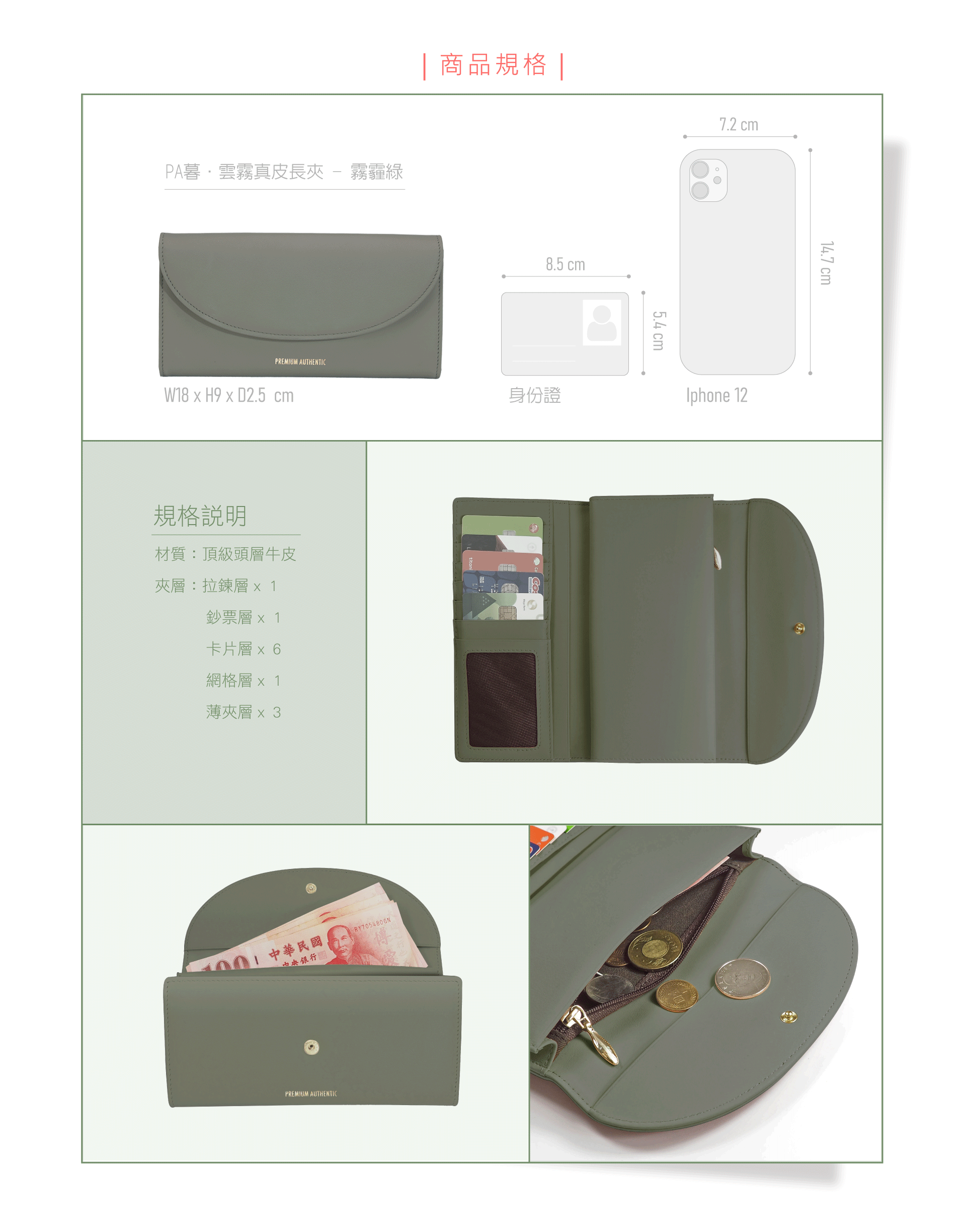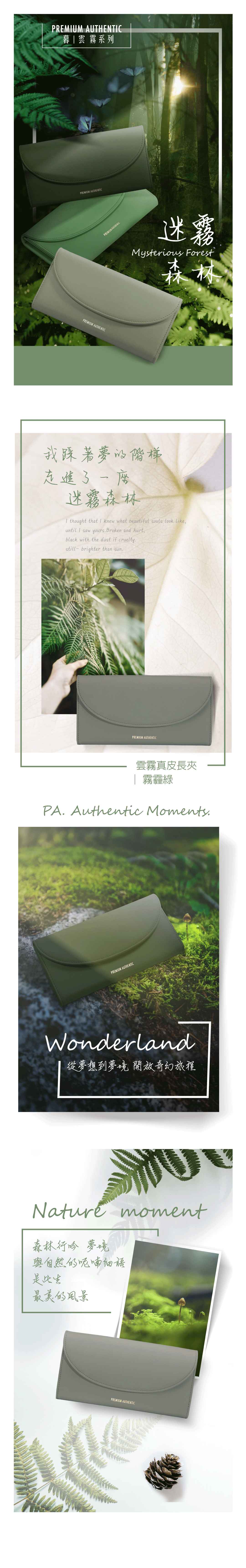 [寶成員購]PA暮.雲霧真皮長夾-霧霾綠