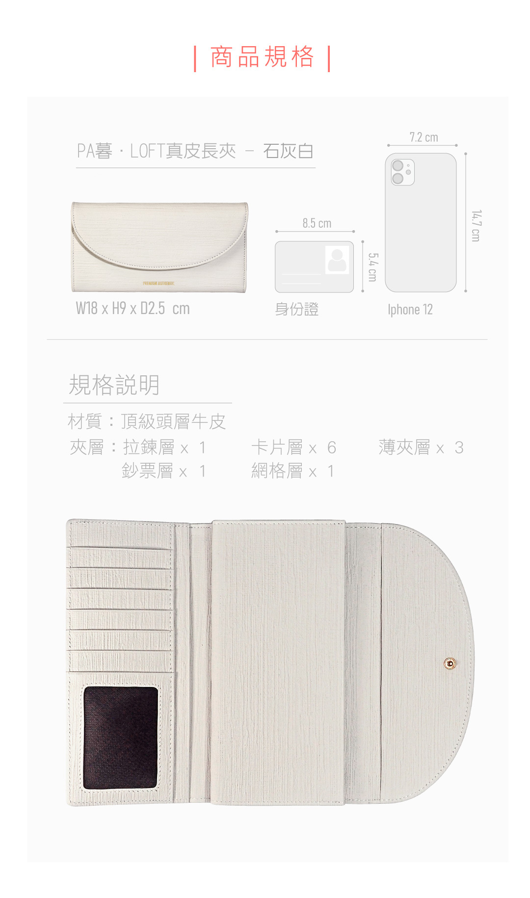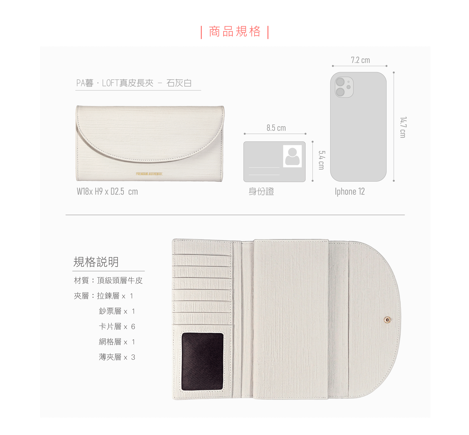 [寶成員購]PA暮.LOFT真皮長夾-石灰白