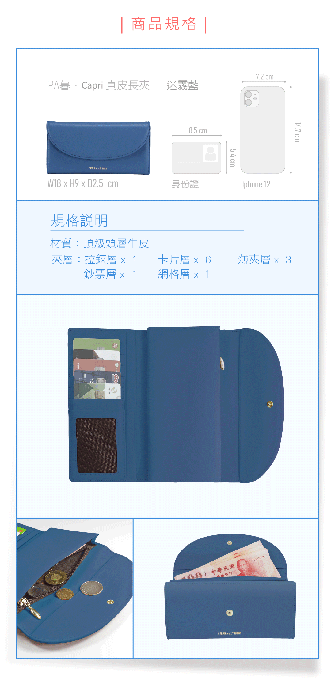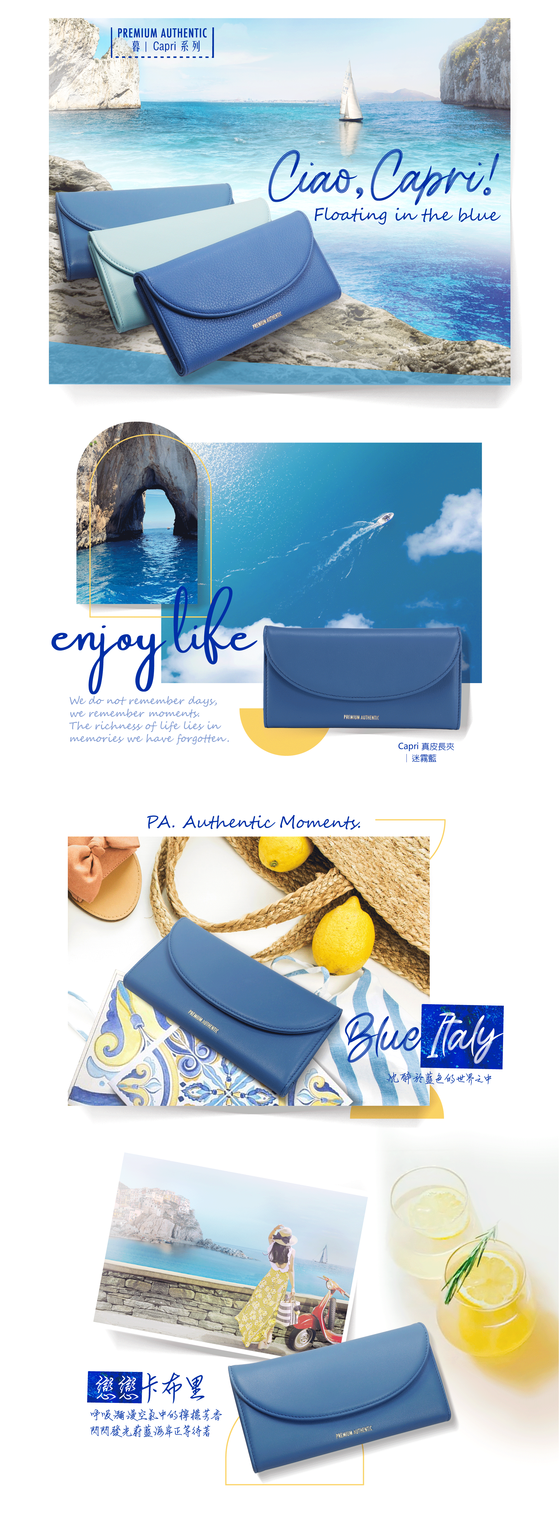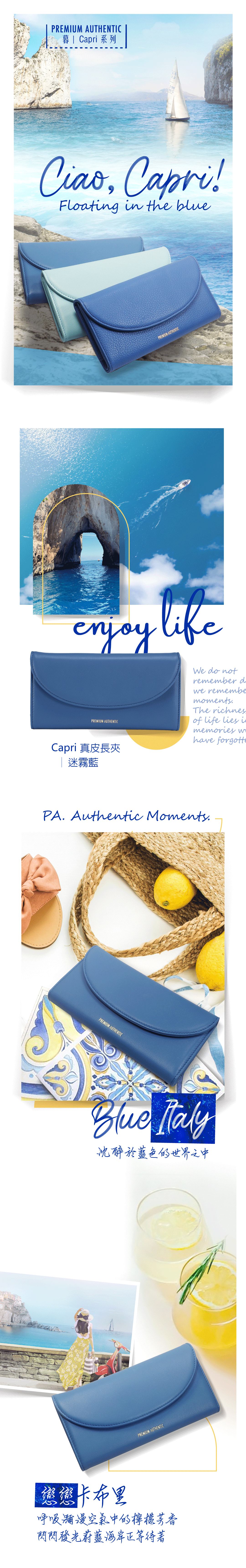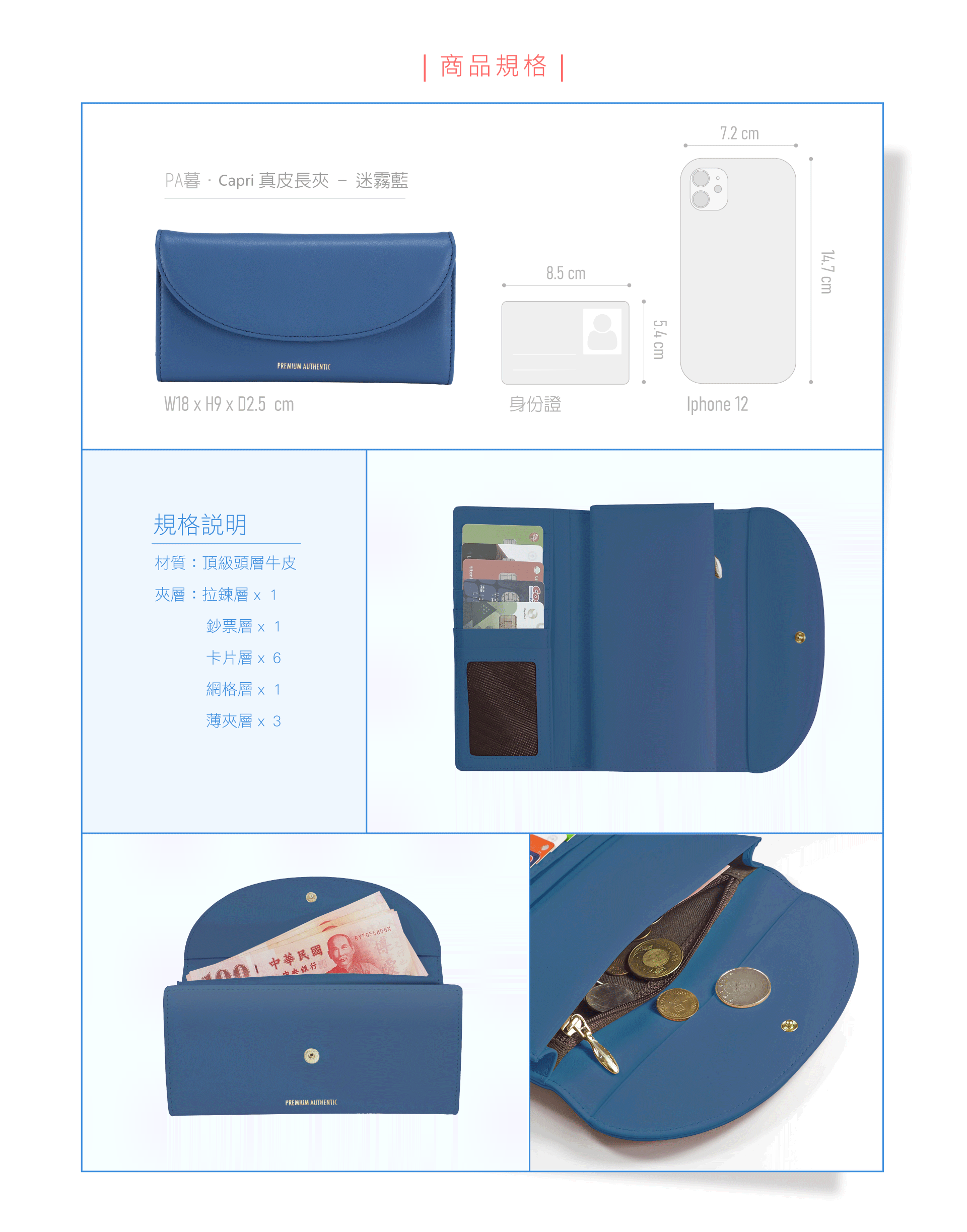 [寶成員購]PA暮.Capri真皮長夾-迷霧藍