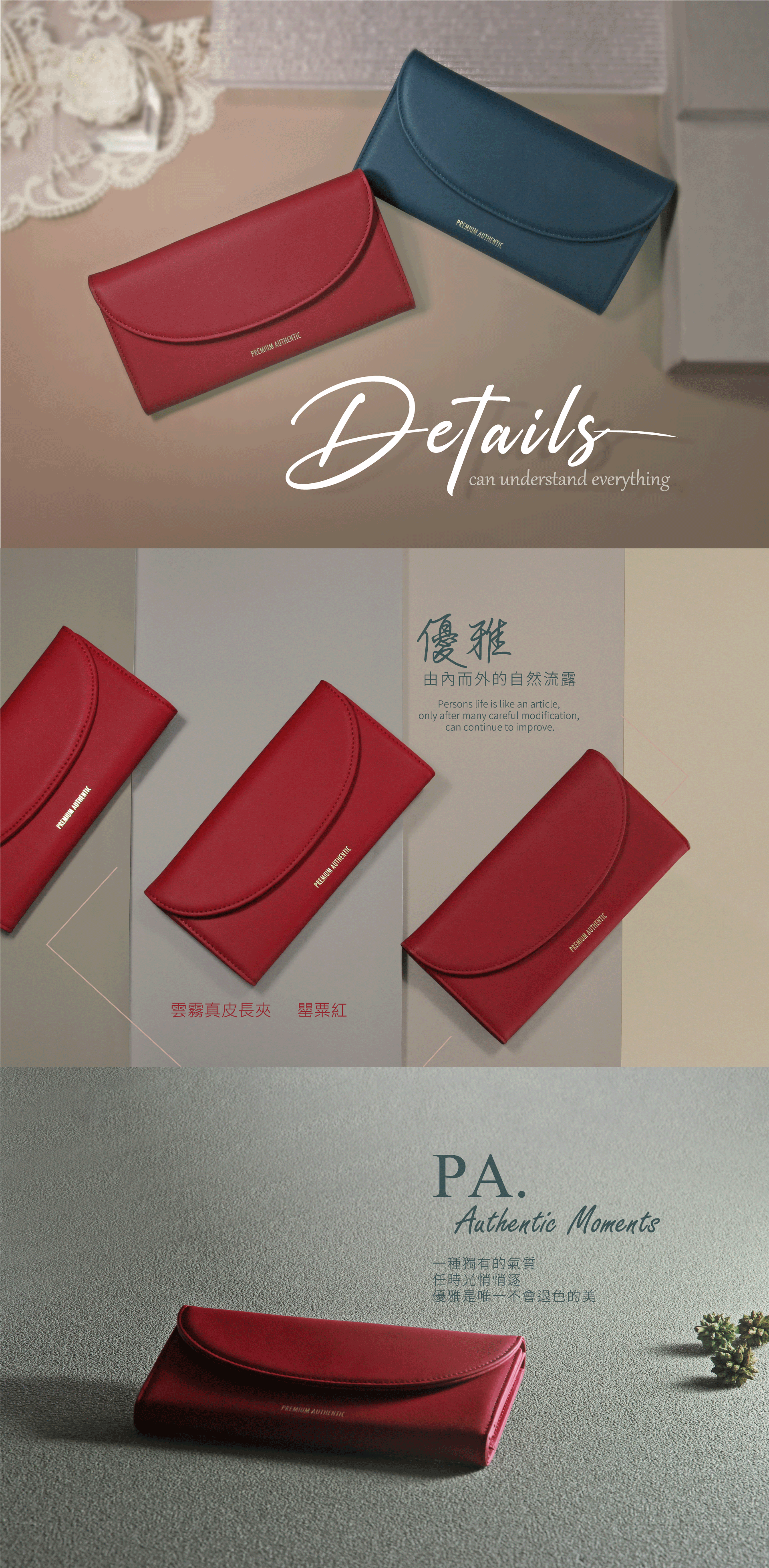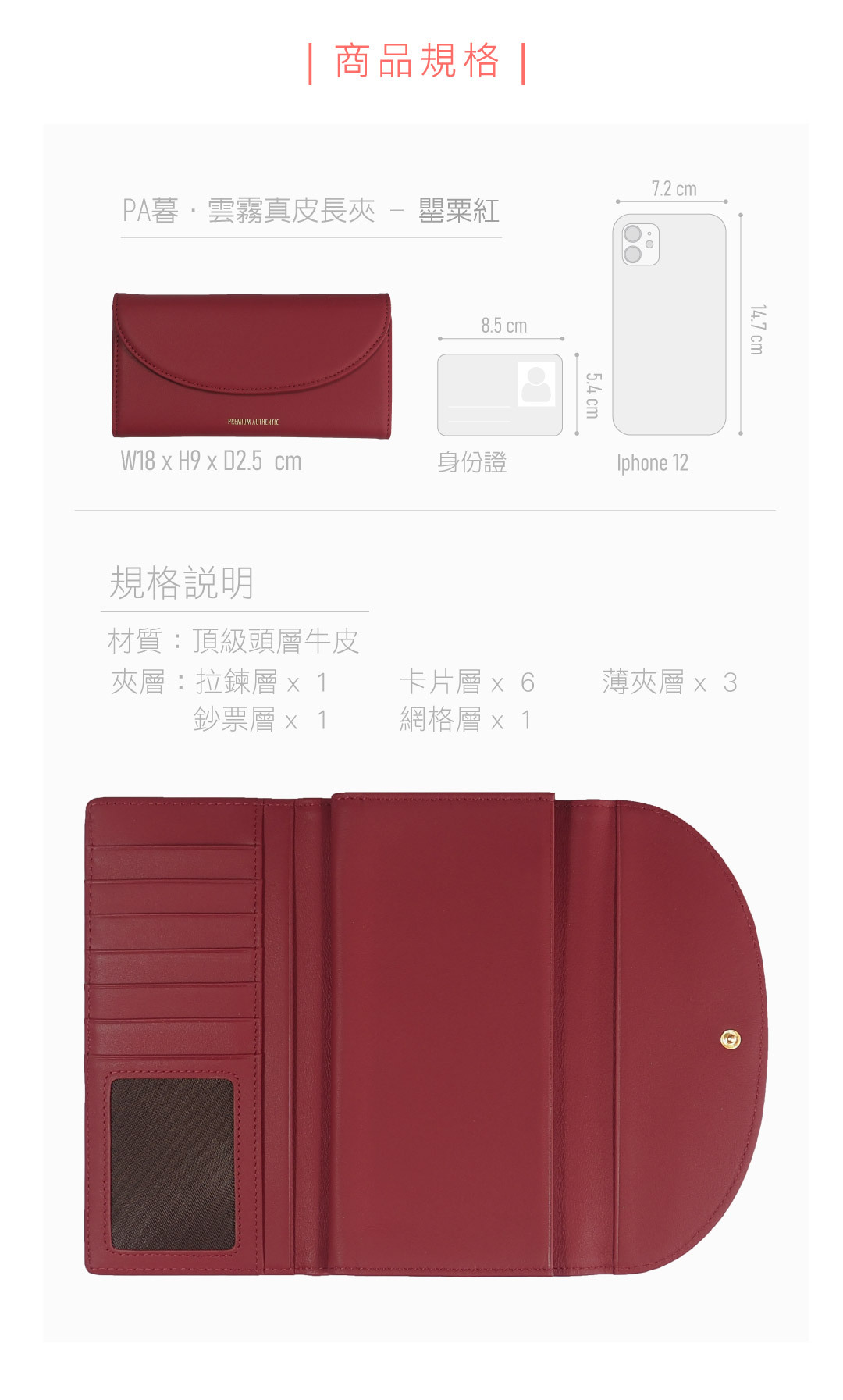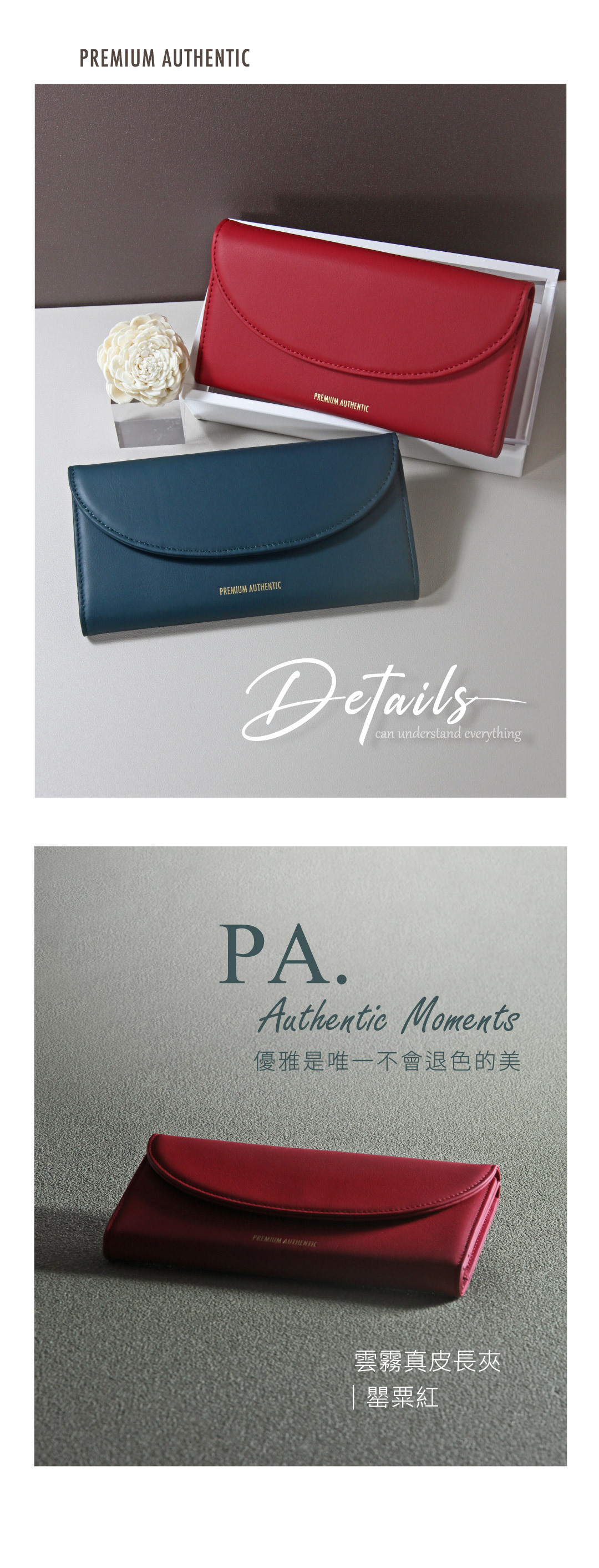 [寶成員購]PA暮.雲霧真皮長夾-罌粟紅