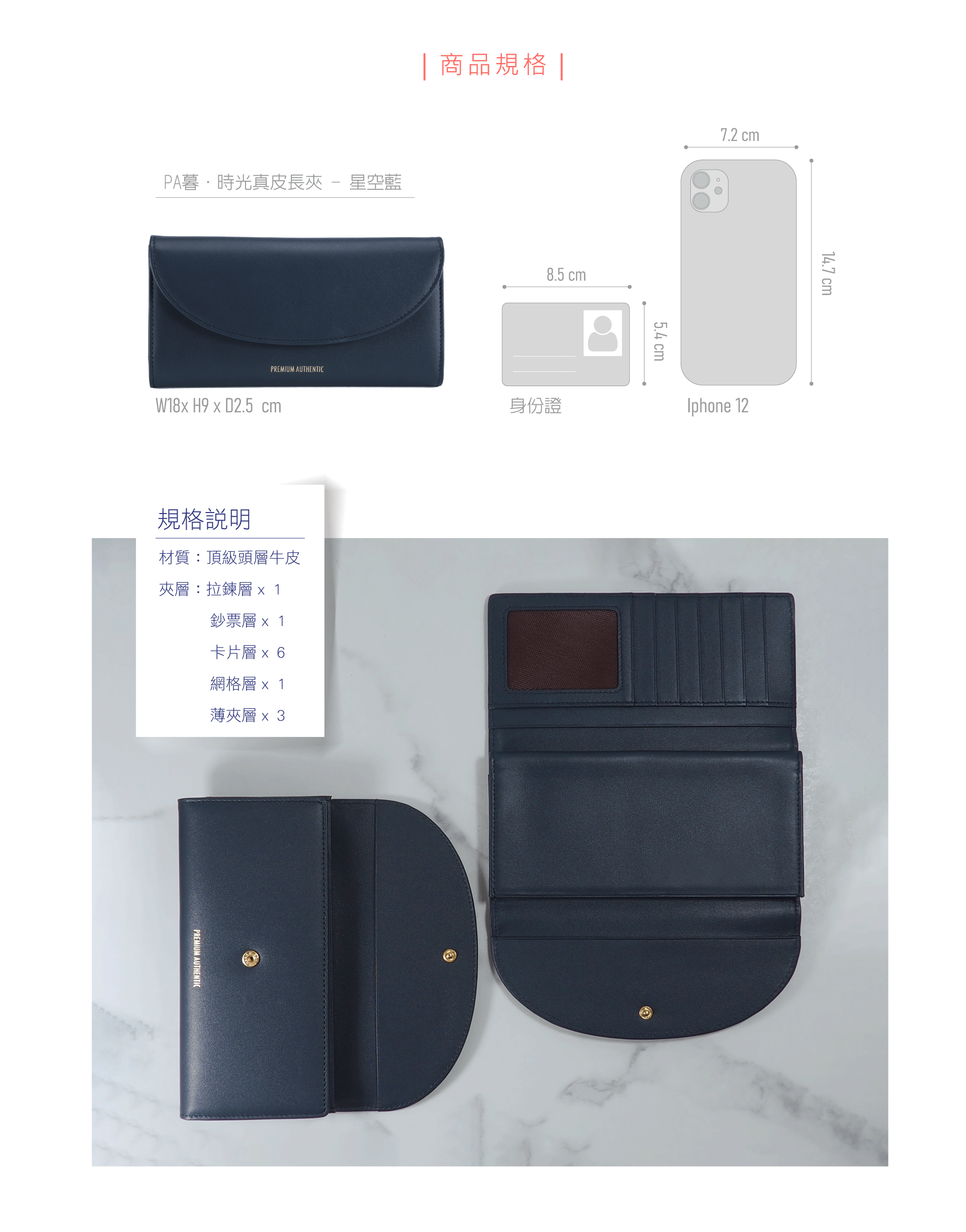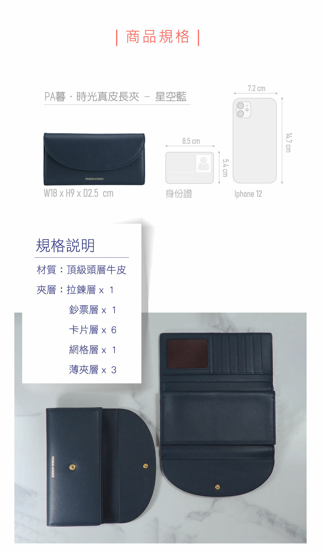 PA暮.時光真皮長夾-星空藍