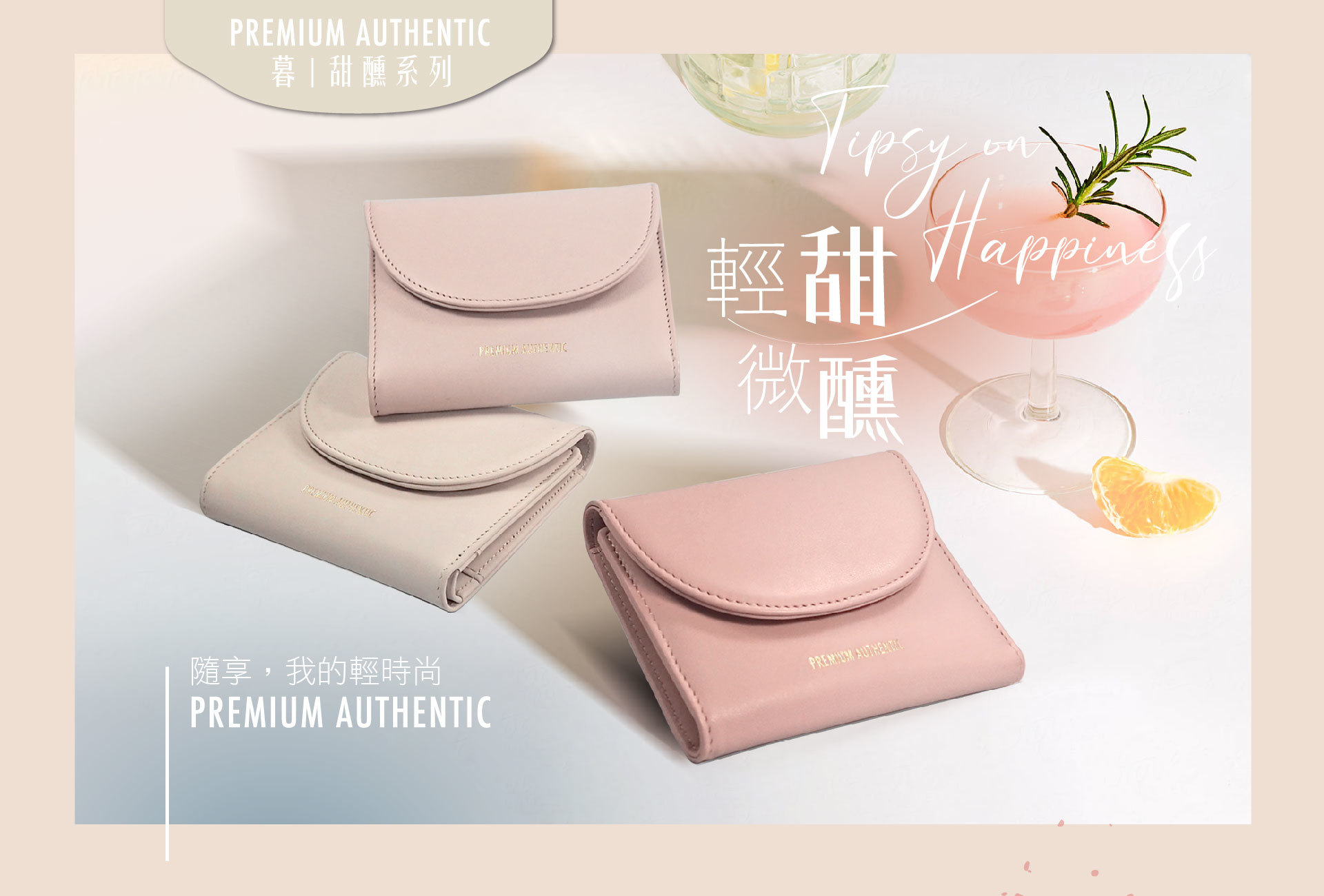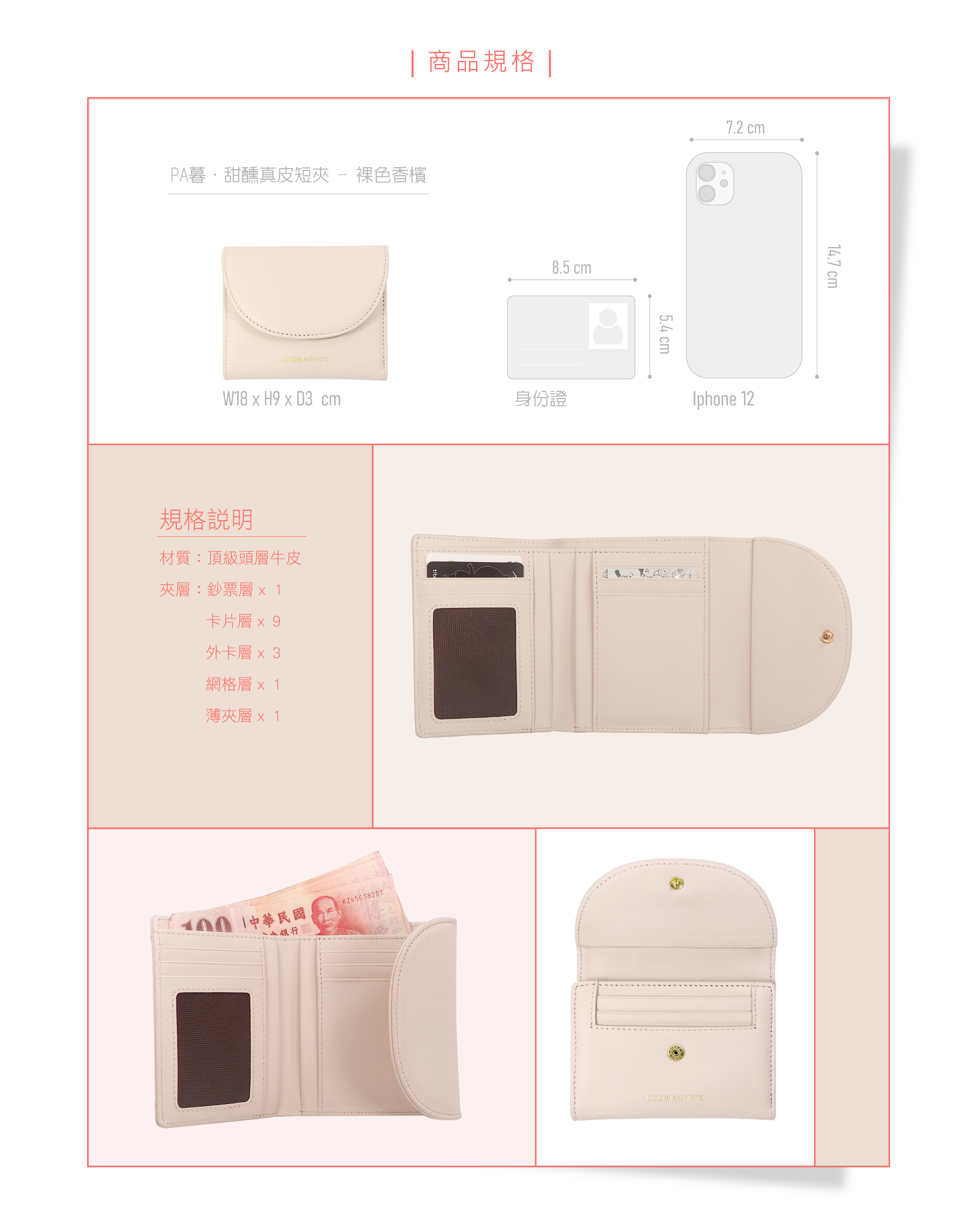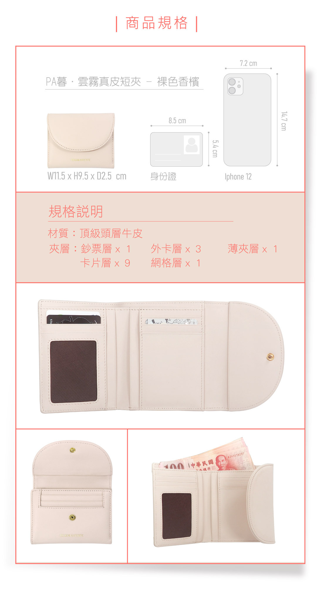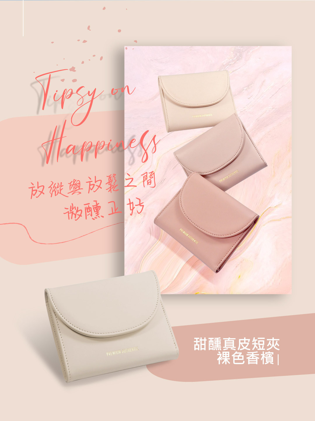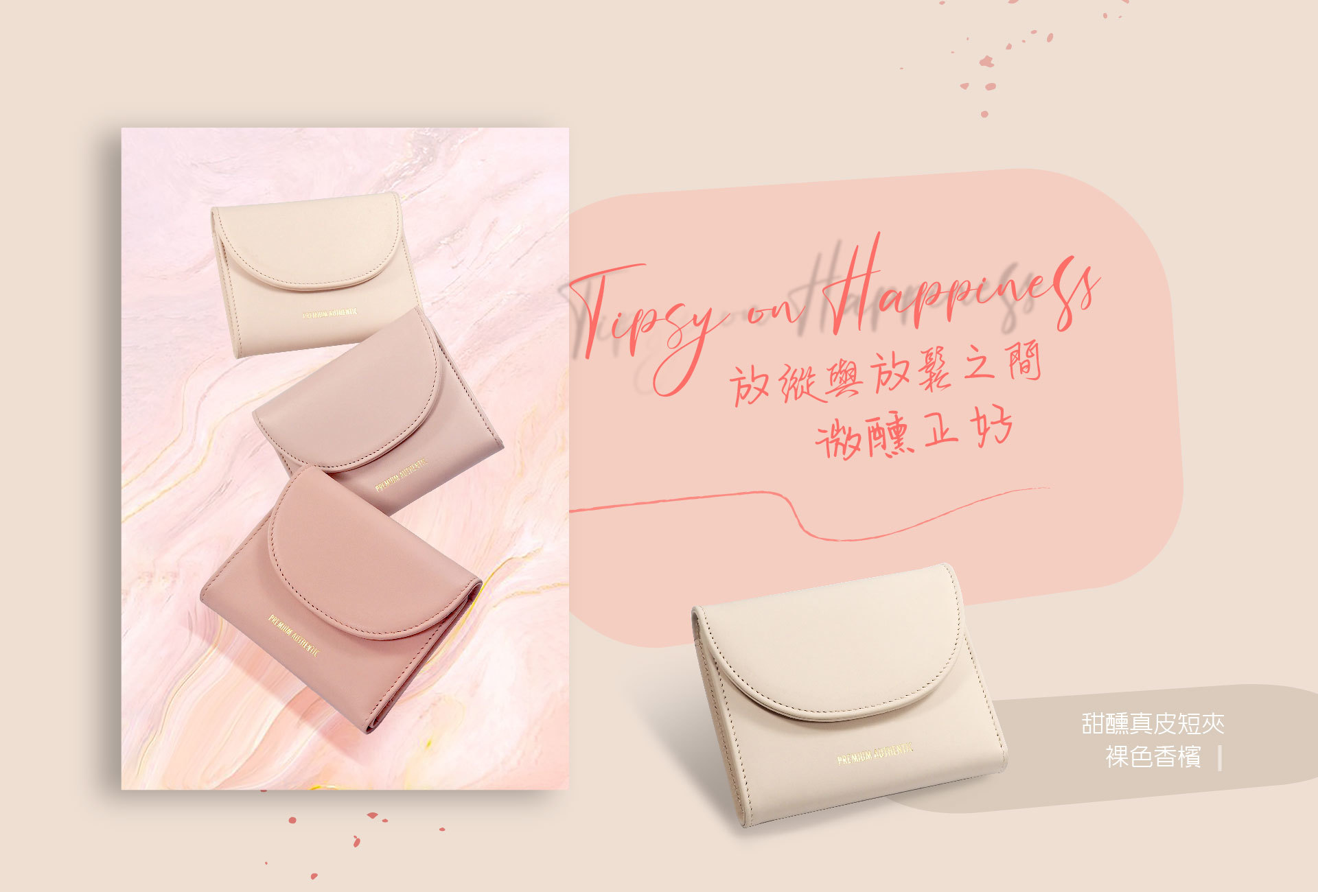 [寶成員購]PA暮.甜醺真皮短夾-裸色香檳