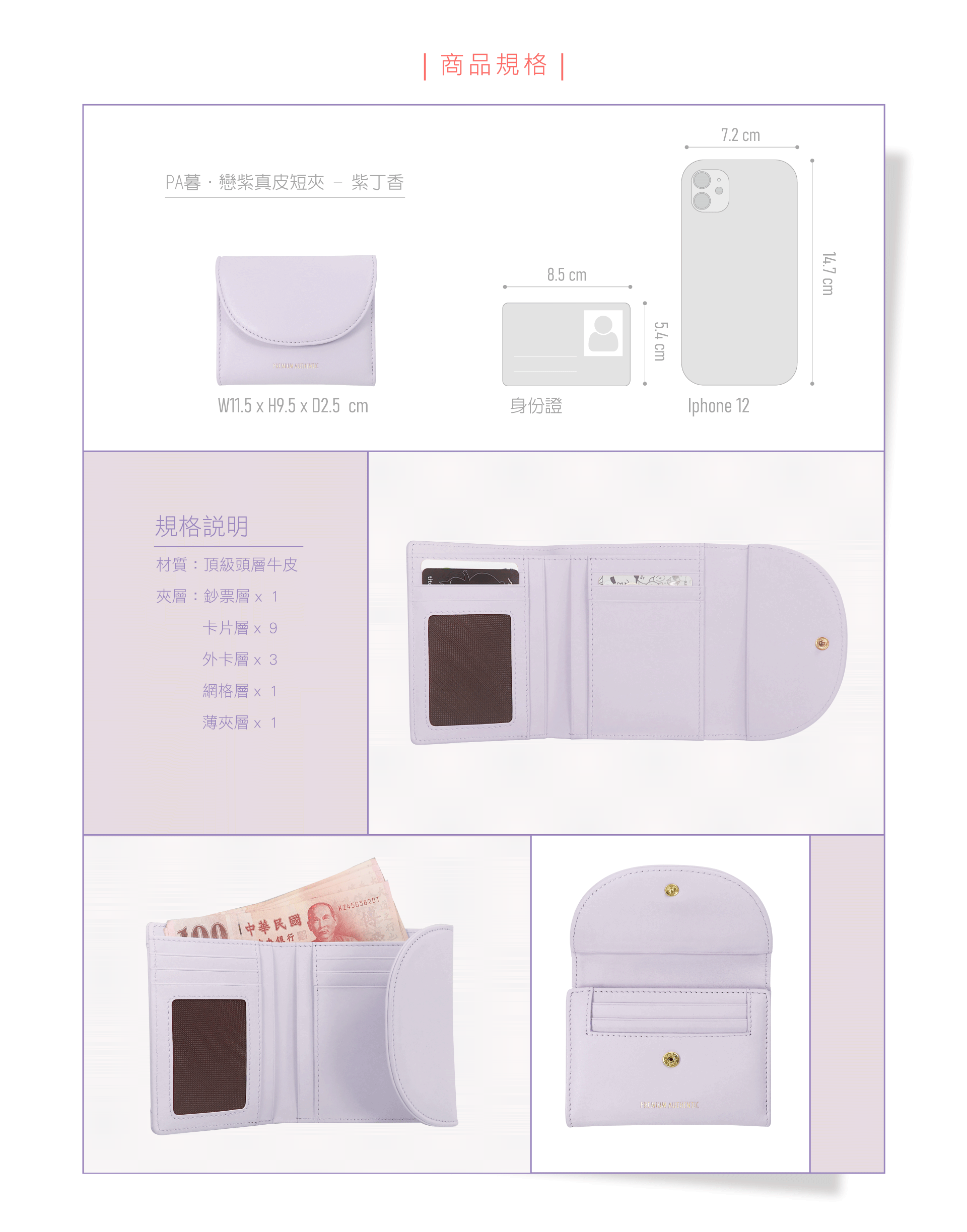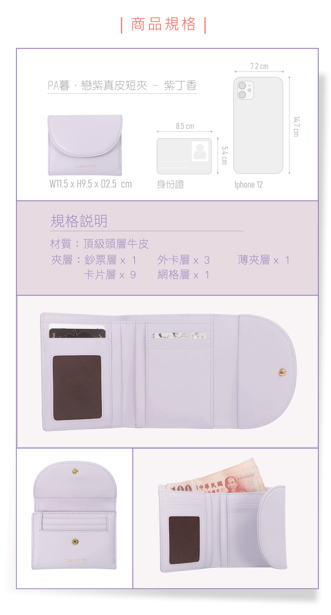 [寶成員購]PA暮.戀紫真皮短夾-淡紫丁香色