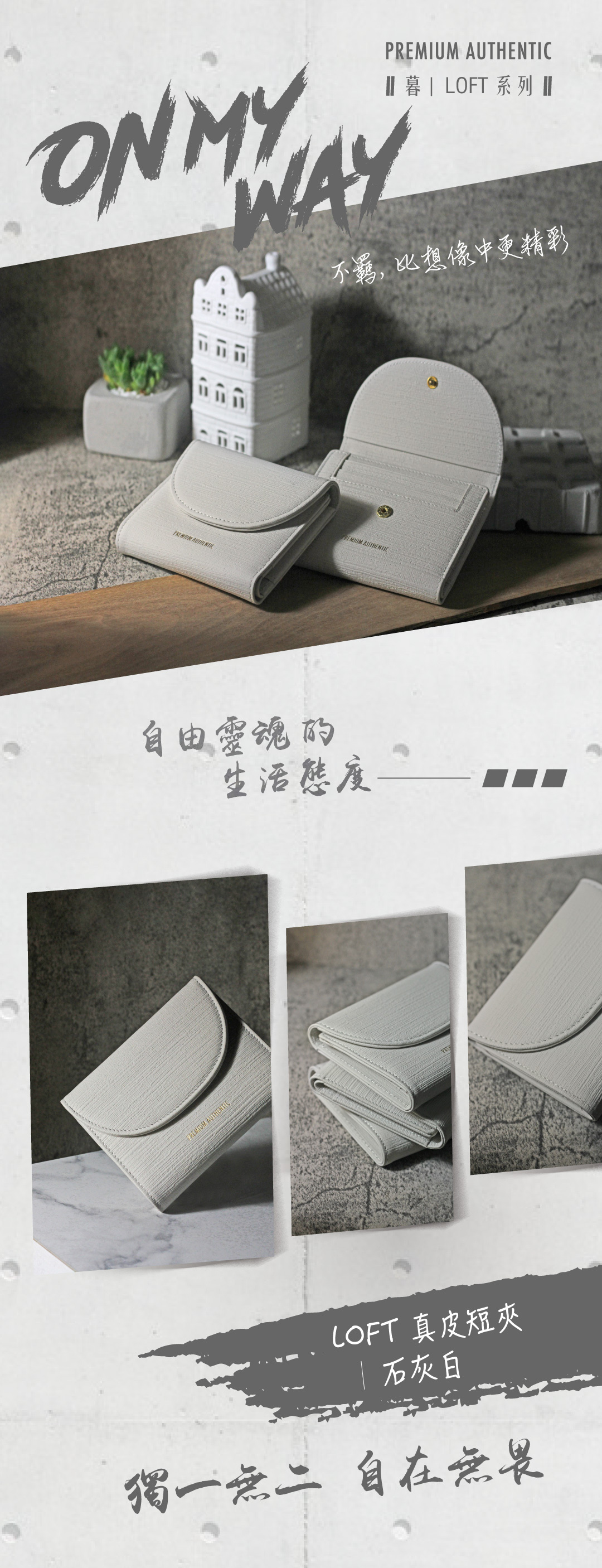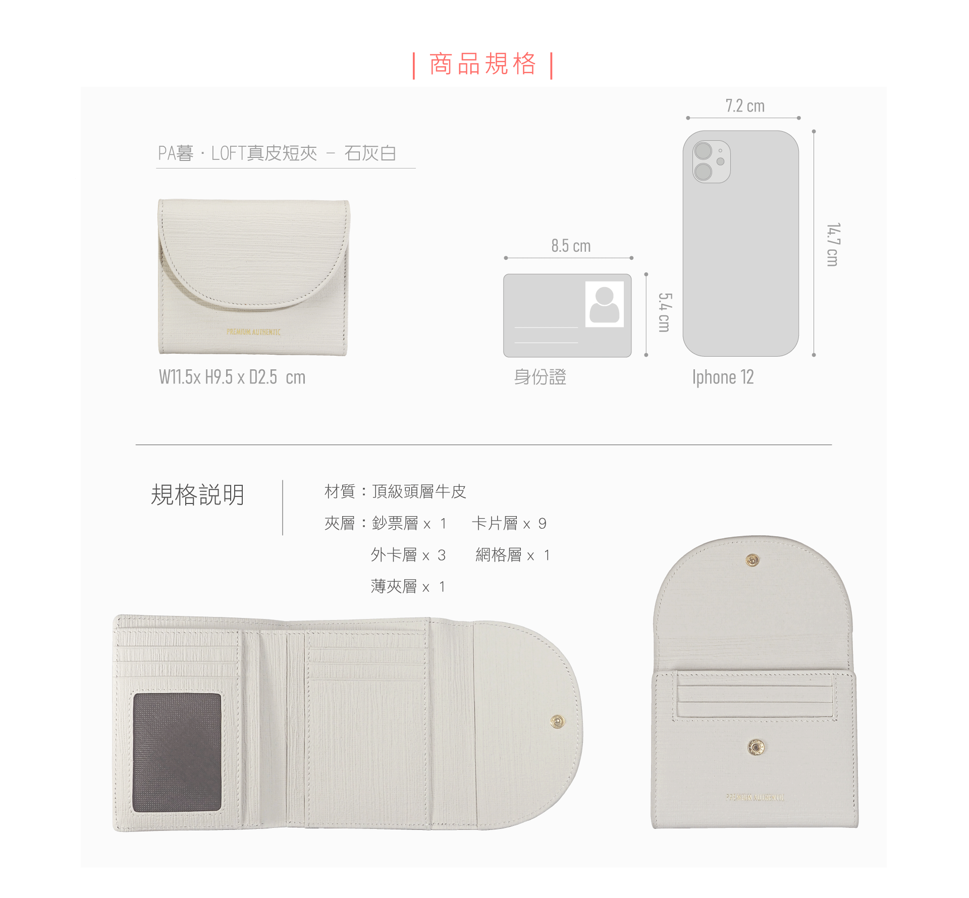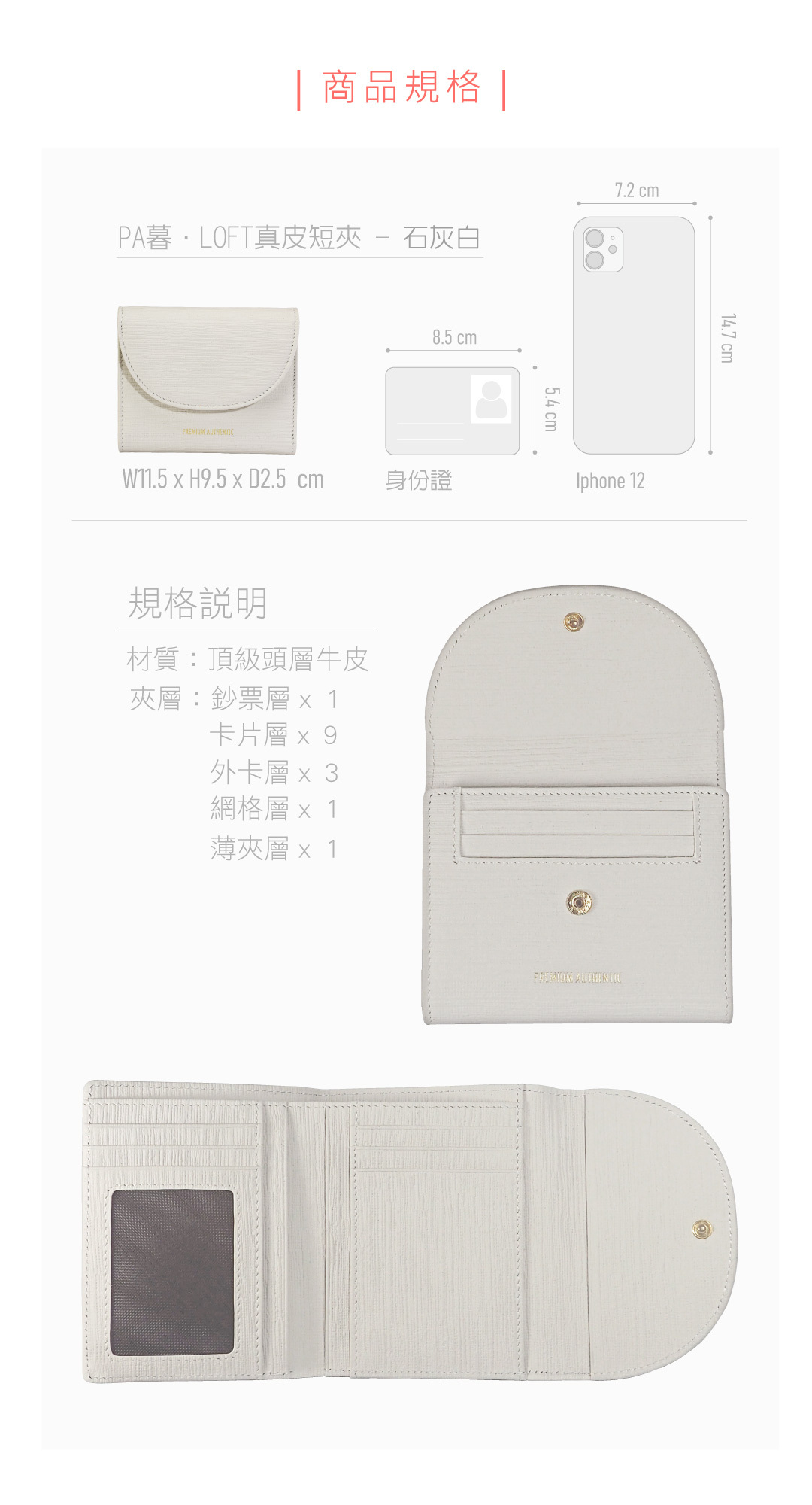 [寶成員購]PA暮.LOFT真皮短夾-石灰白