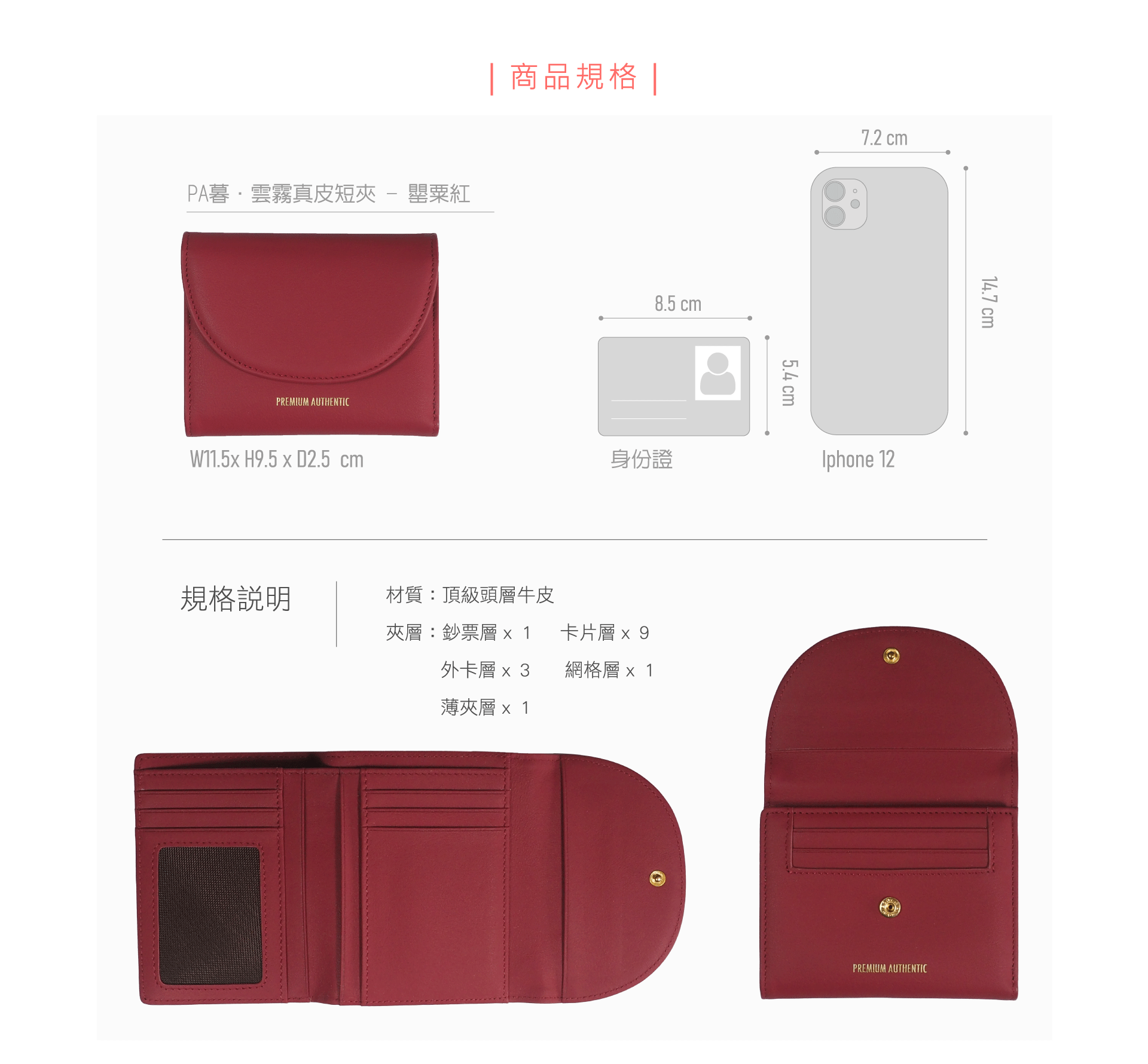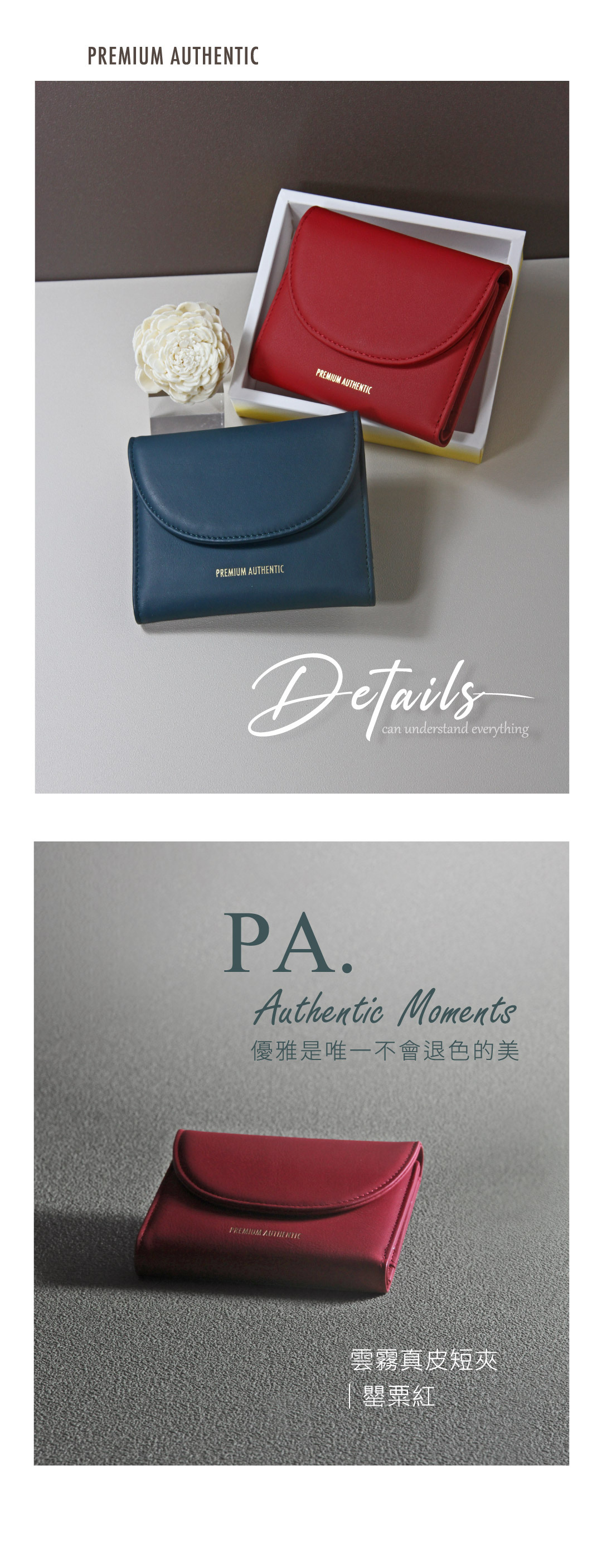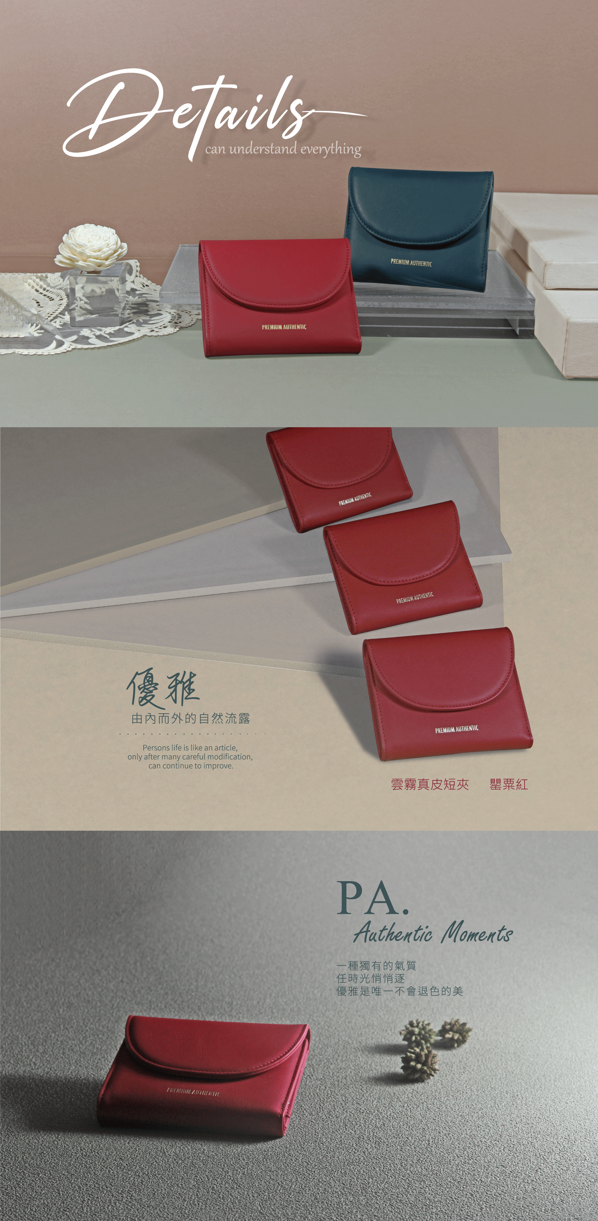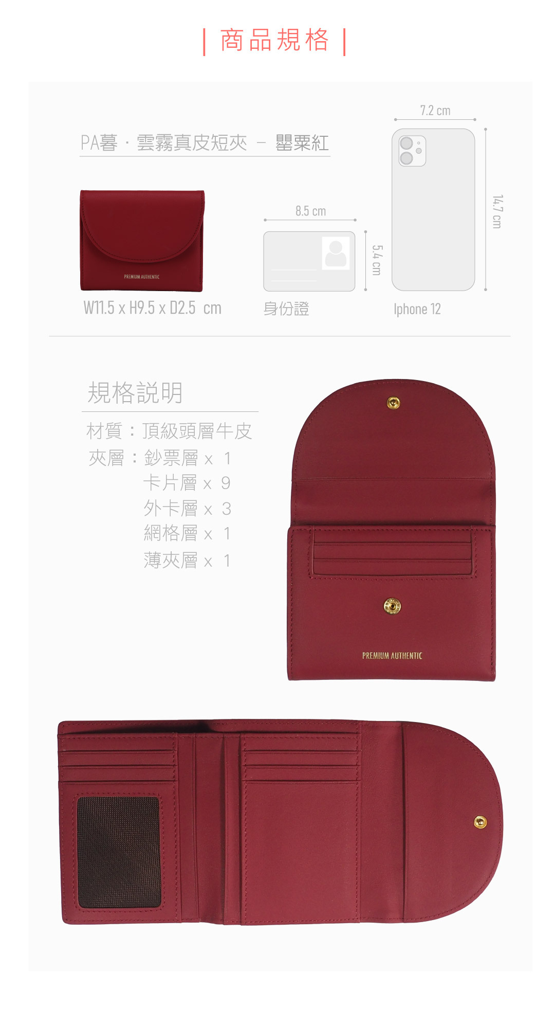 [寶成員購]PA暮.雲霧真皮短夾-罌粟紅