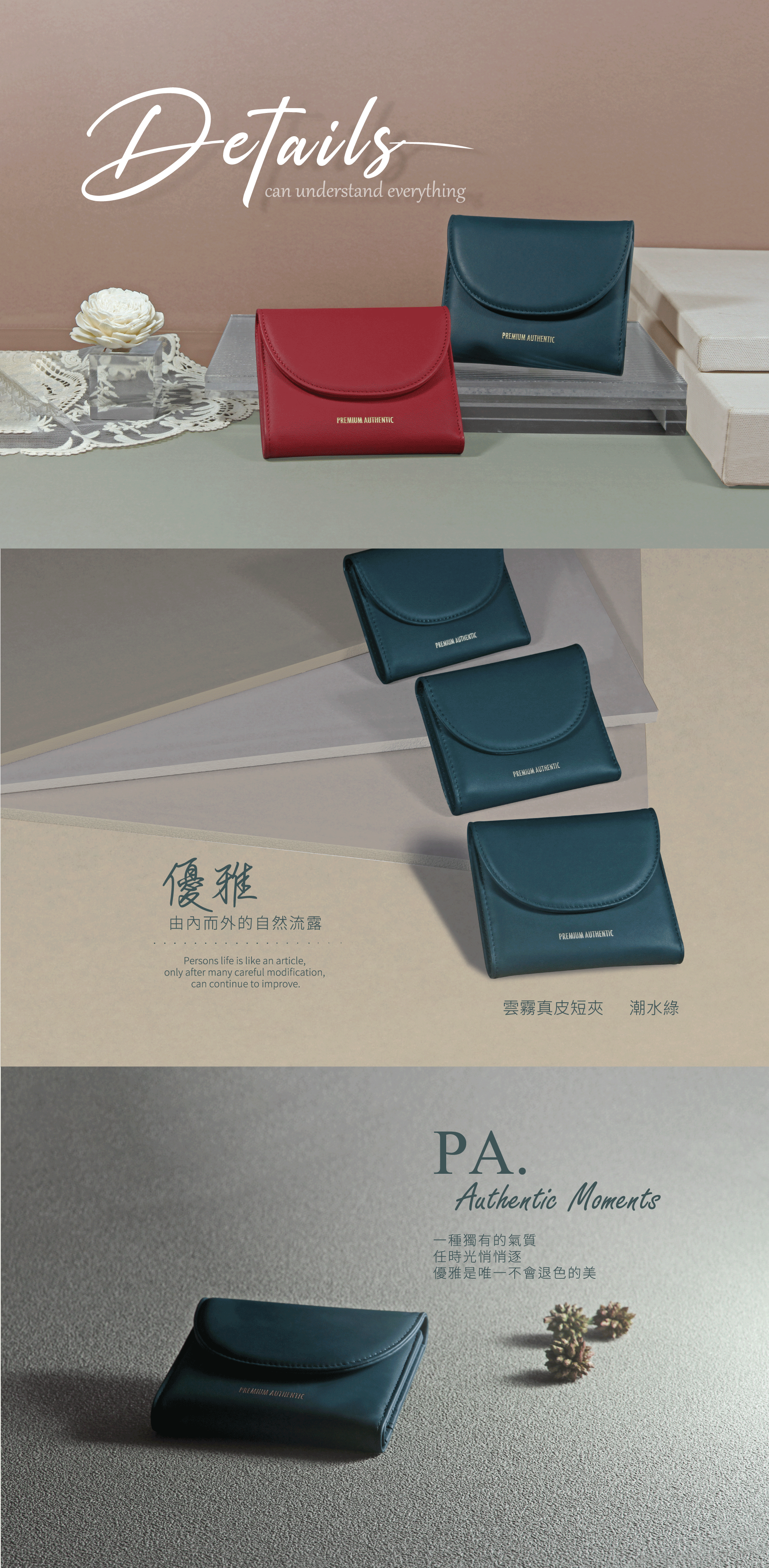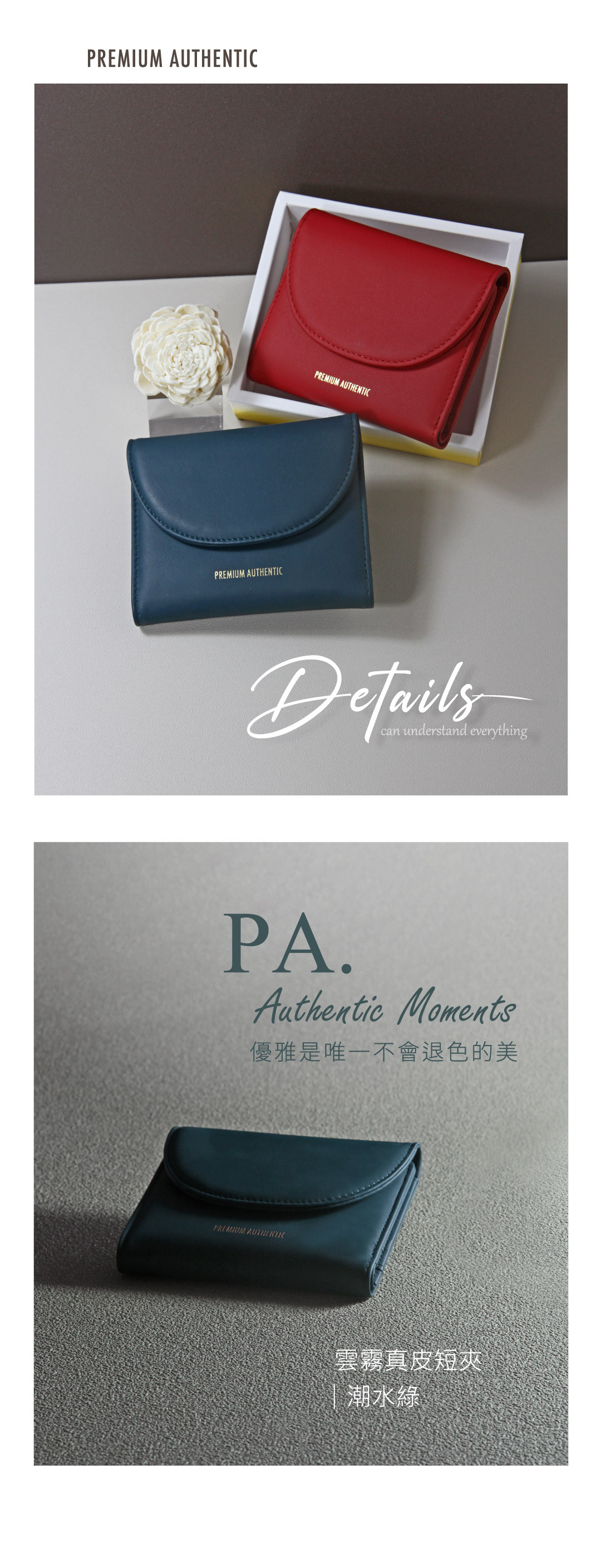 [寶成員購]PA暮.雲霧真皮短夾-潮水綠