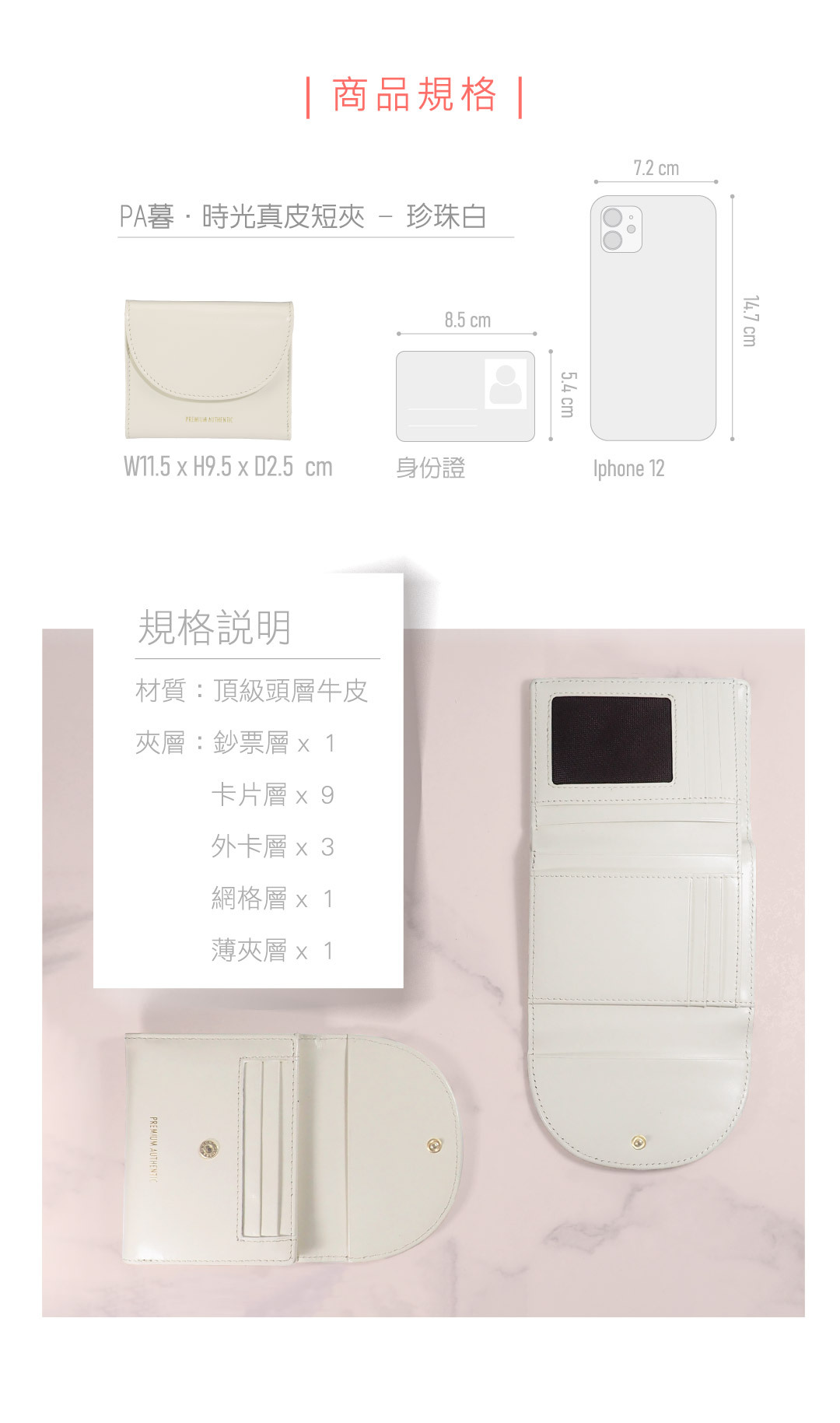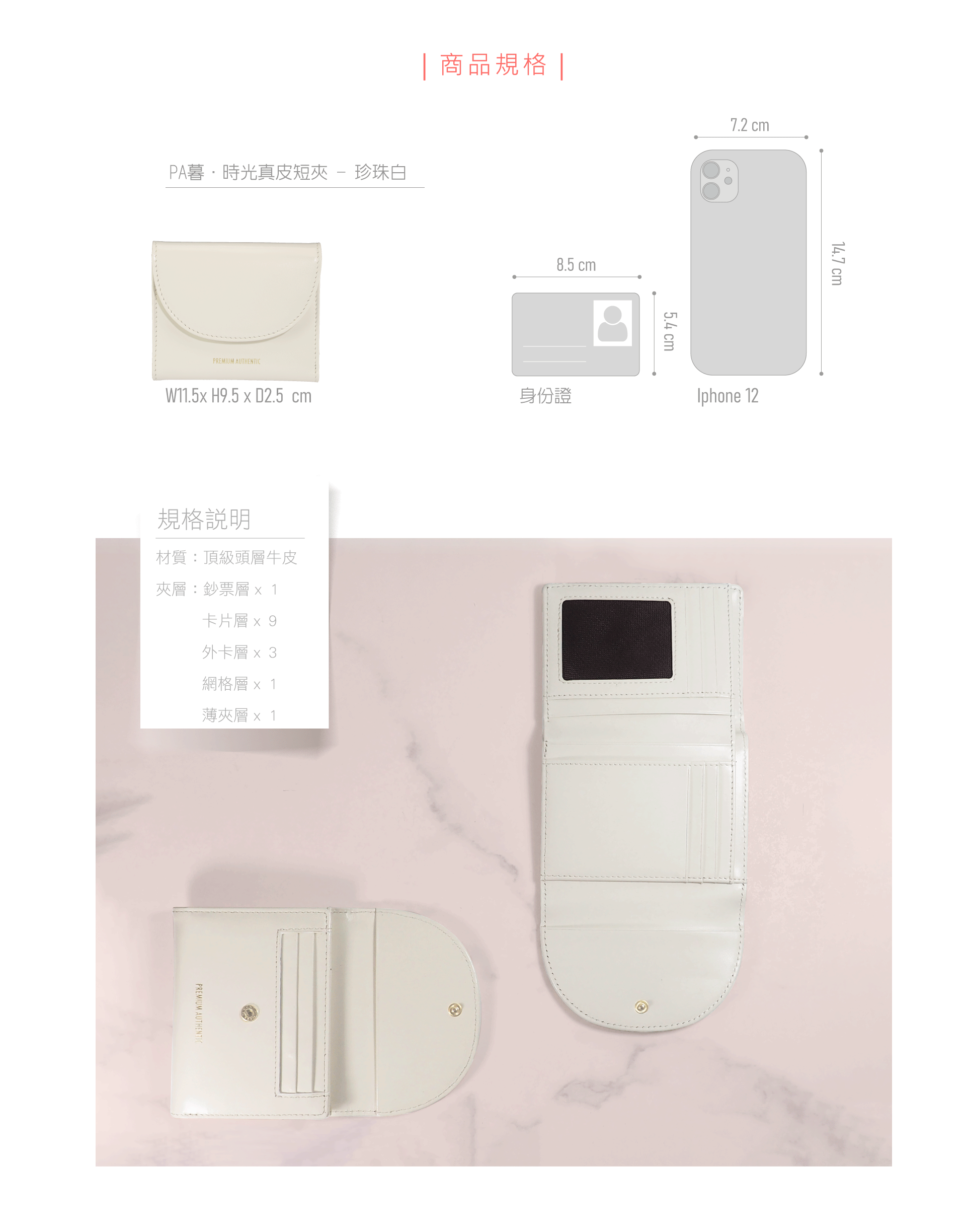 PA暮.時光真皮短夾-珍珠白