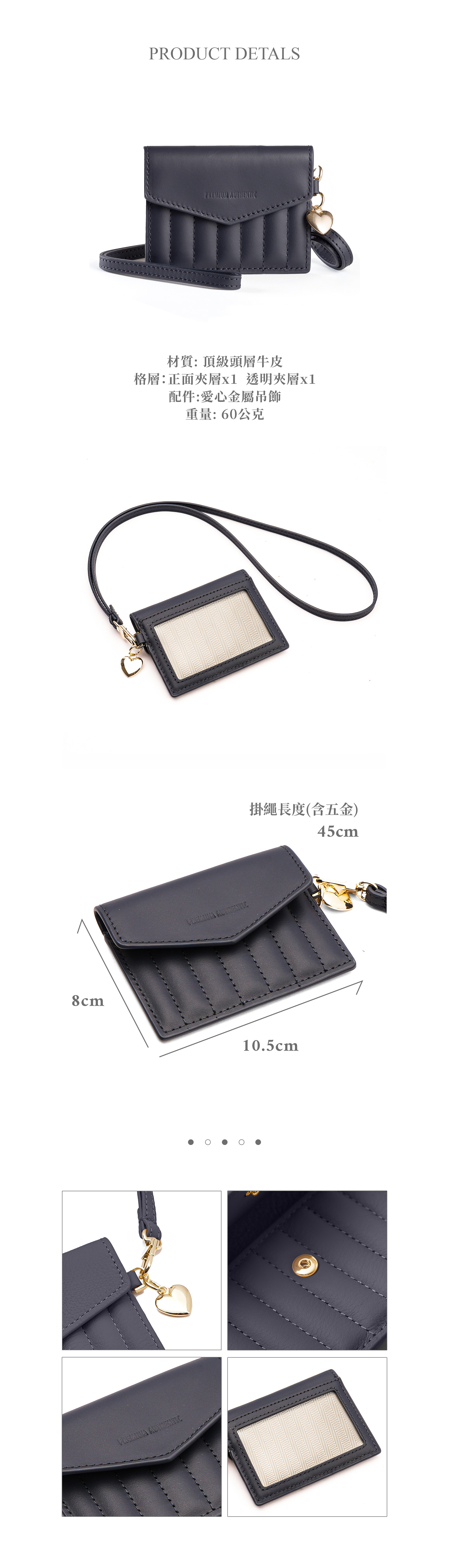 [寶成員購]PA.Puffy真皮條紋車線掛繩愛心證件卡套-幕夜藍