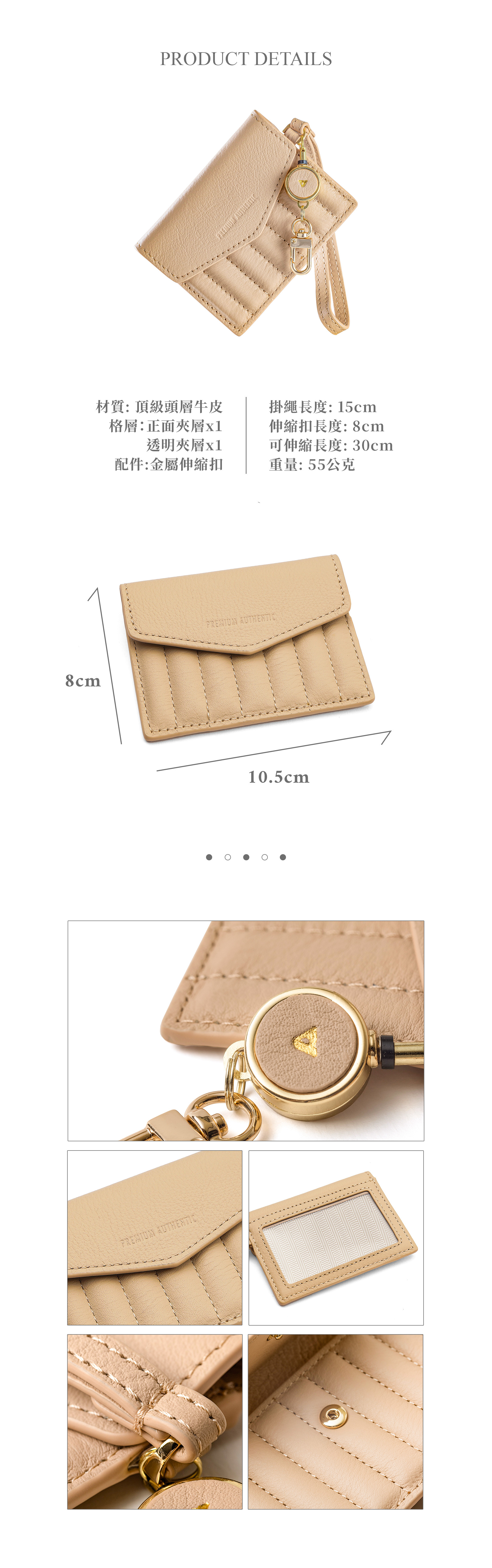[寶成員購]PA.Puffy真皮條紋車線伸縮扣證件卡套-奶茶色