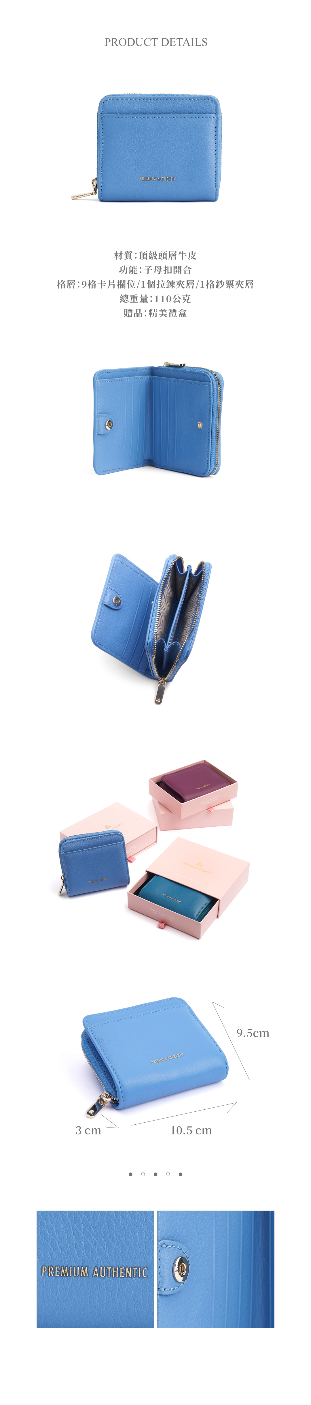 格層:卡片欄位x8/拉鍊夾層x1/鈔票夾層x1