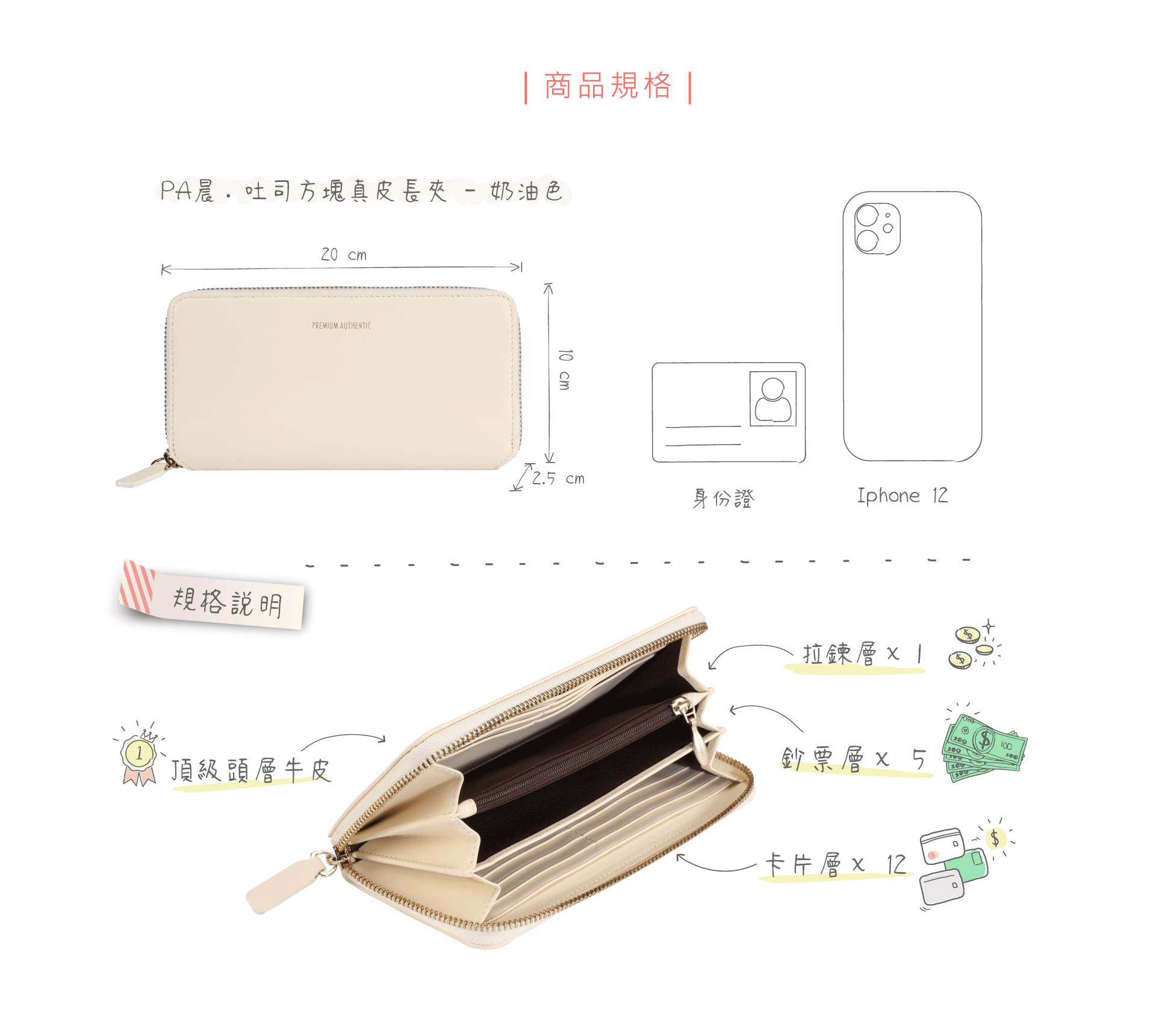 格層:拉鍊層x1/鈔票層x5/卡片層x12