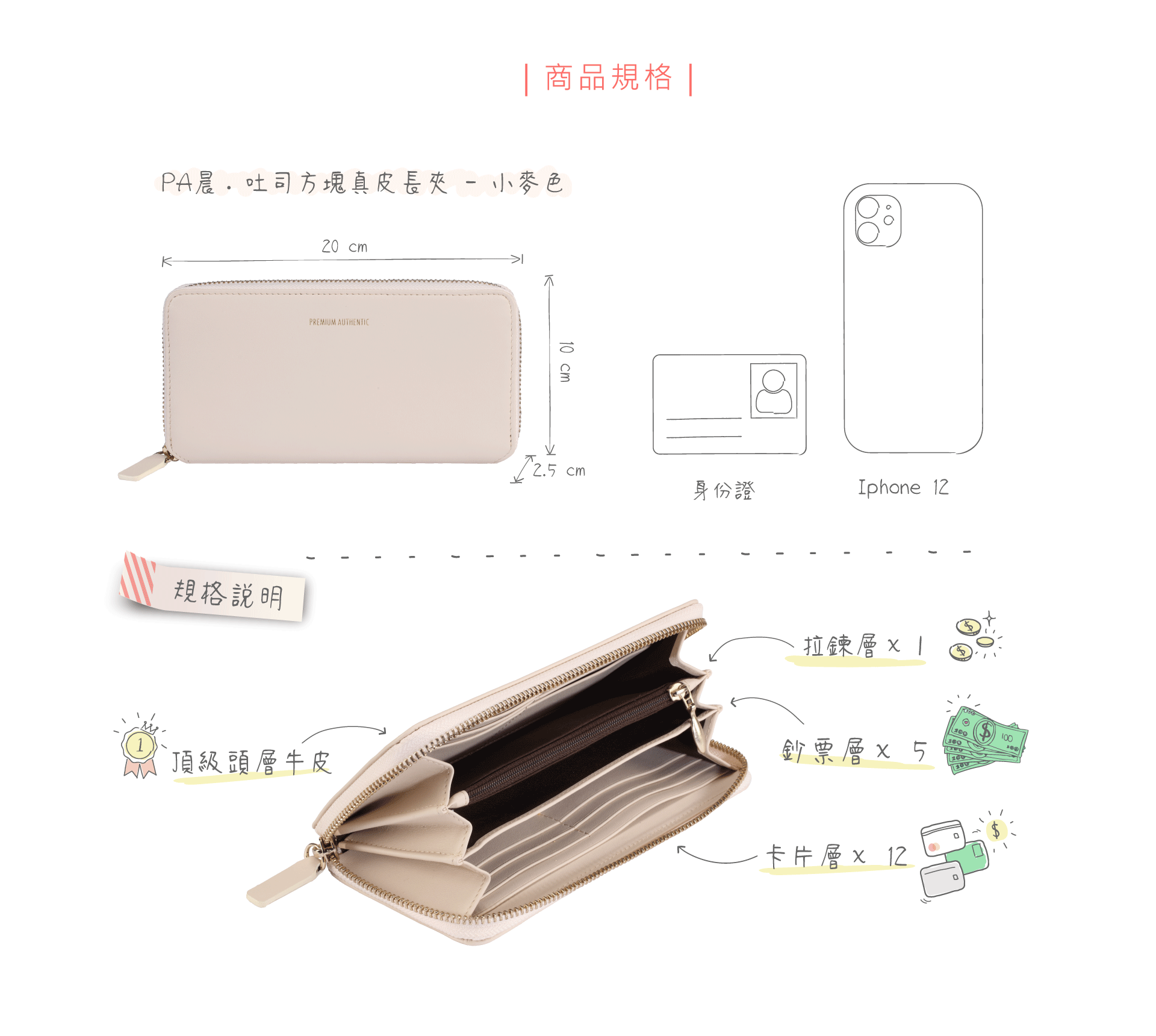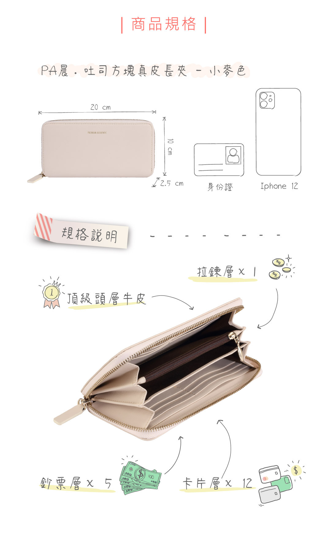 [寶成員購]PA晨.吐司方塊真皮長夾-小麥色
