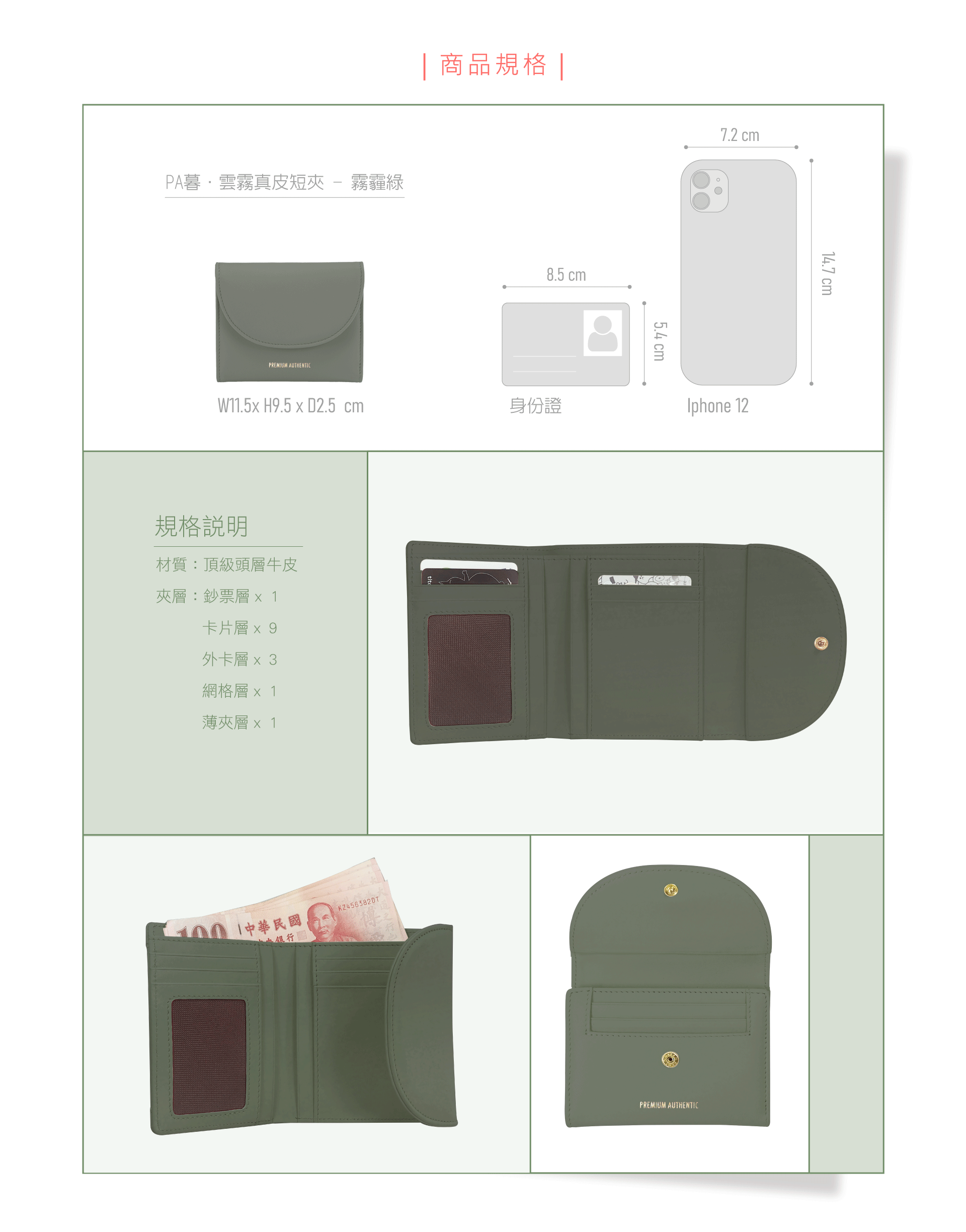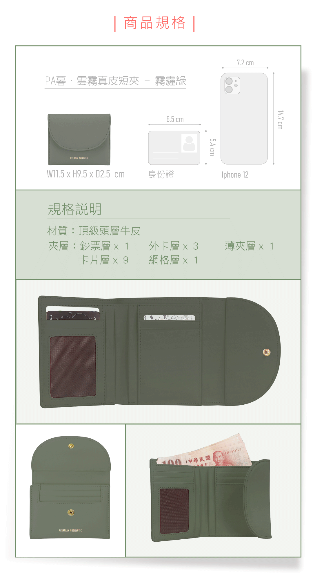 【PA暮.雲霧真皮短夾-霧霾綠】