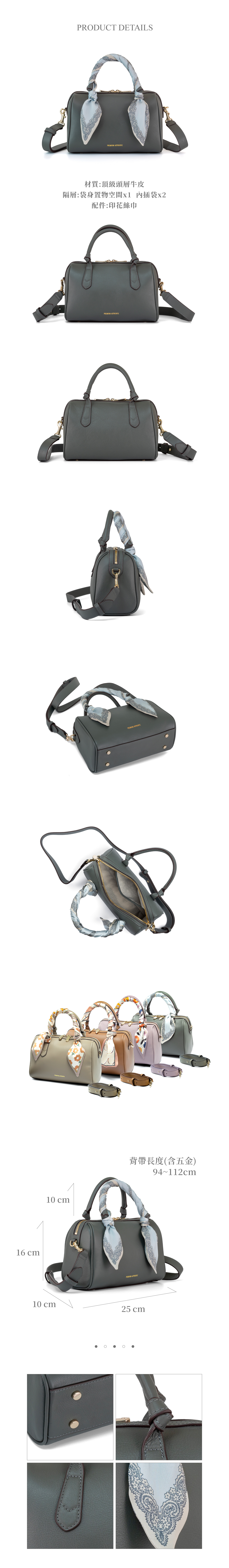[寶成員購]PA.Olivia絲巾扭結兩用波士頓包-杏仁綠