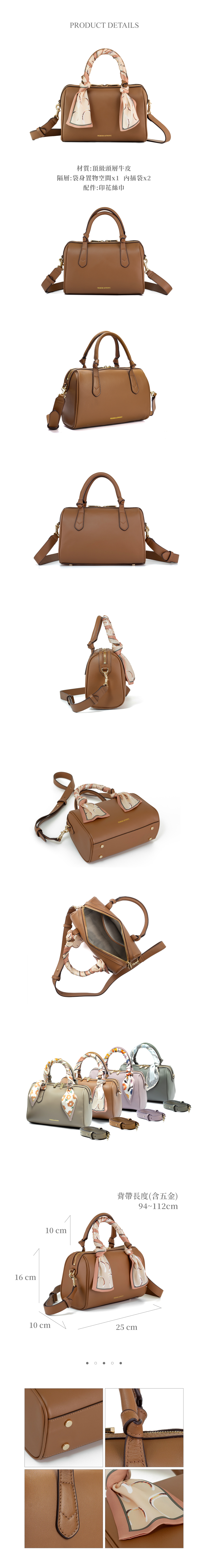 【PA.Olivia絲巾扭結兩用波士頓包-焦糖色】