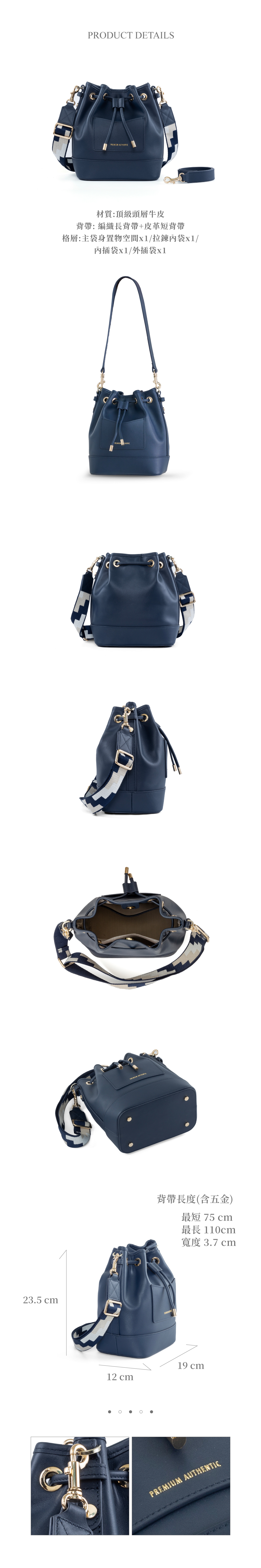 PA.Una真皮抽繩兩用水桶包-海軍藍