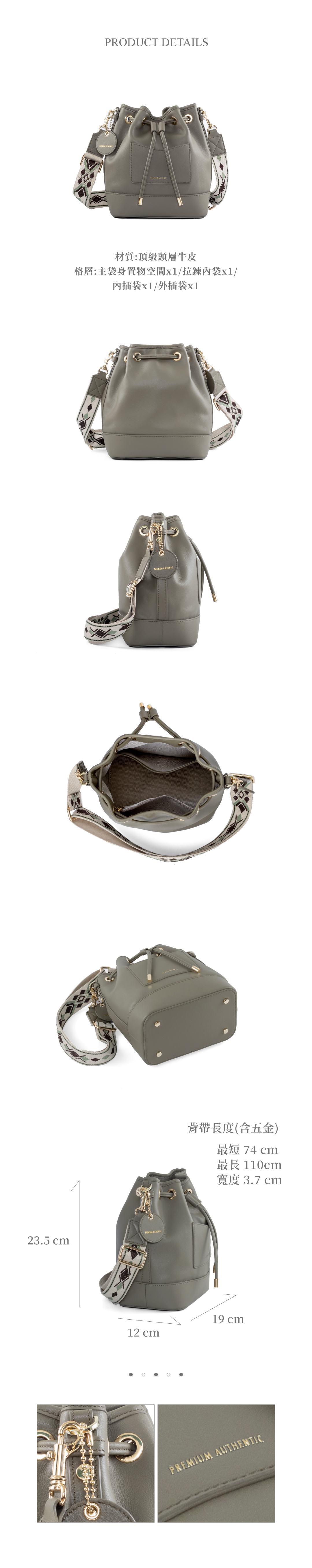 [寶成員購]PA.Una真皮抽繩兩用水桶包-橄欖綠